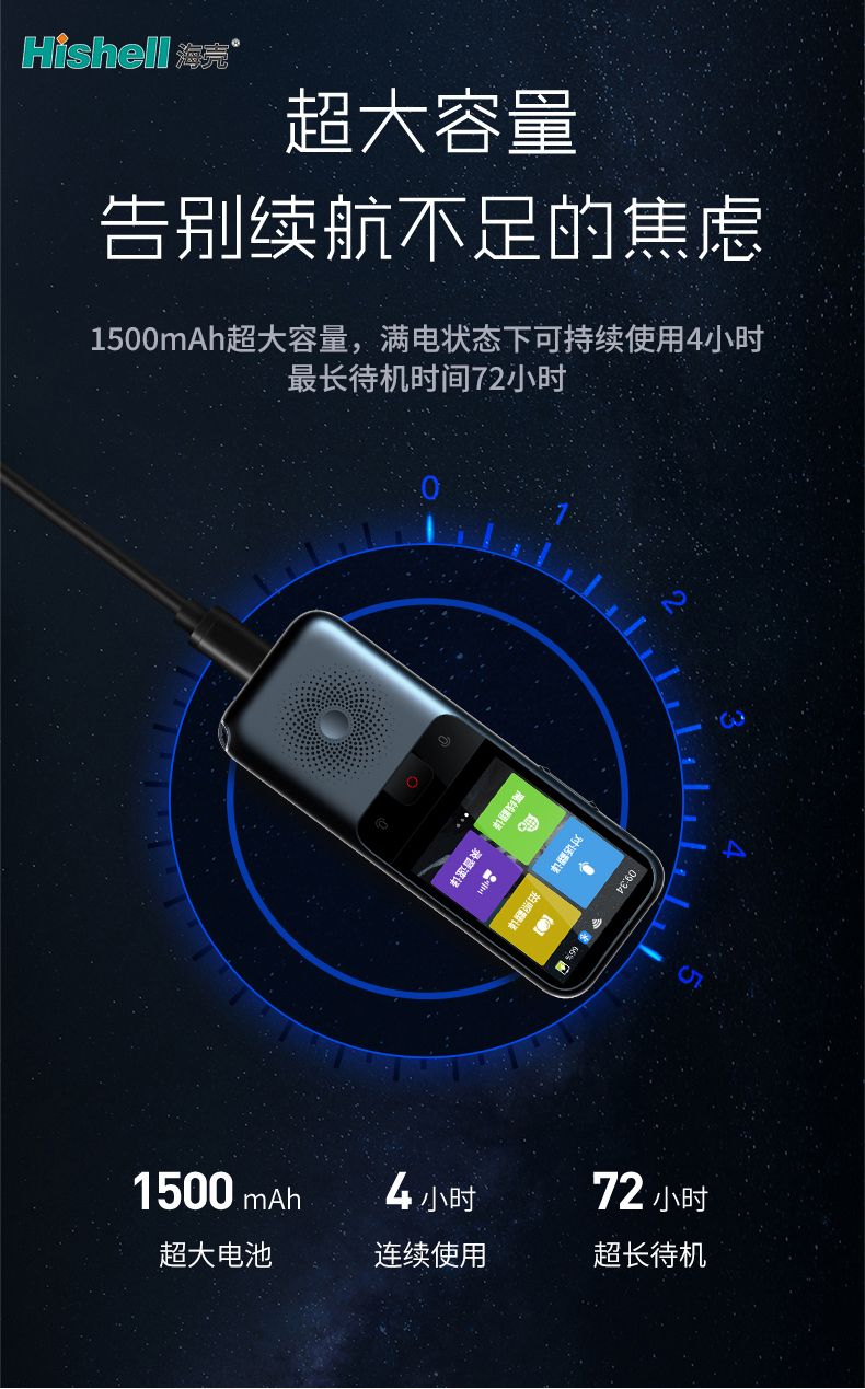 外出使用翻译机,最担心突然断电?这款翻译机搭载 1500mAh 超大容量电池,彻底帮你告别续航不足的焦虑。满电状态下,它能支持 4 小时持续使用,不管是半天的跨国会议、全天的景点游览,还是几小时的英语学习,都能稳稳 hold 住。