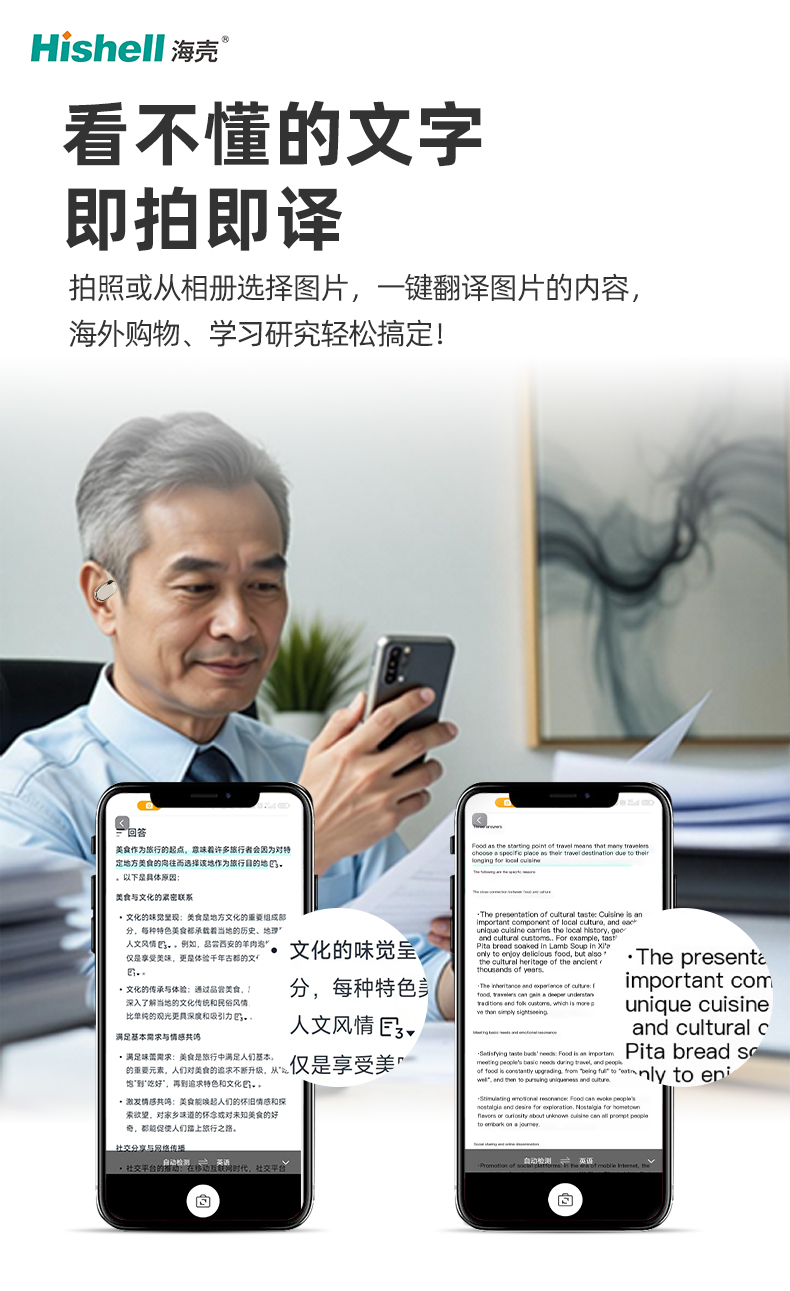 遇到看不懂的文字不用愁,这款智能翻译耳机帮你轻松破解!核心搭载“即拍即译”黑科技,只需通过配套APP拍照,或直接从手机相册选取图片,一键触发翻译功能,图片中的文字就能快速转化为你熟悉的语言。无论是海外购物时的商品说明、成分表,还是学习研究中遇到的外文文献、资料,它都能精准翻译,让沟通与获取信息毫无阻碍。小巧便携的设计,随时随地都能派上用场,为你的跨国出行、学术探索保驾护航,让语言不再成为难题。