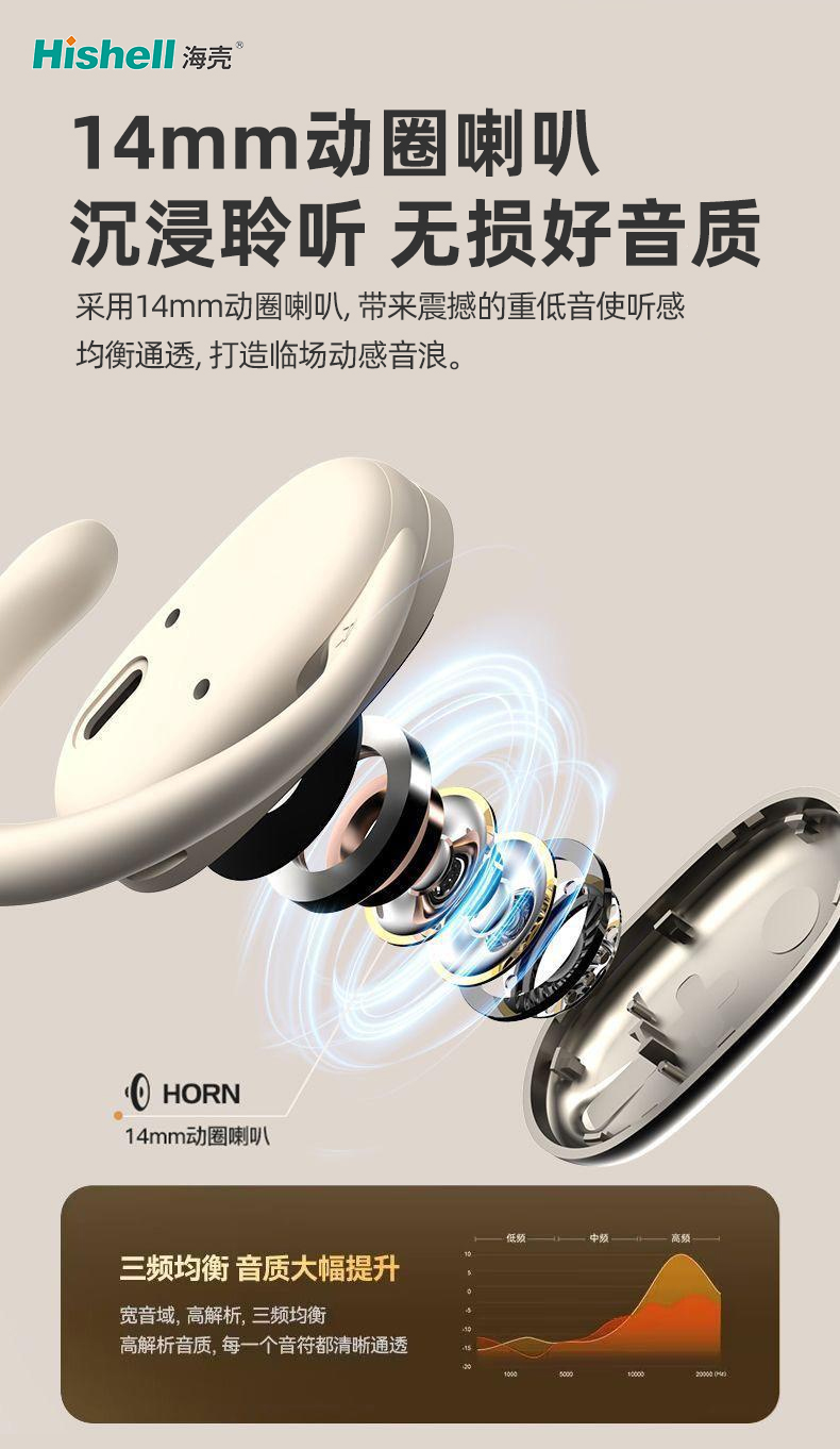 这款智能翻译耳机兼具舒适佩戴与无损音质。130°可旋转耳挂灵活适配各类耳型,调节便捷,稳固贴合且轻盈无压,晨跑、跳跃等动态场景下也不易滑落。核心搭载14mm动圈喇叭,以大尺寸单元迸发震撼重低音,听感均衡通透,人声清晰、器乐分明,打造临场感十足的动感音浪。实时翻译功能加持,跨国交流精准高效;运动时收听内容,音质体验同样出色,是兼顾实用与听觉享受的得力伙伴。