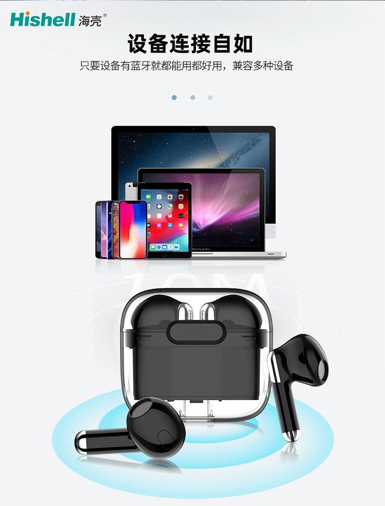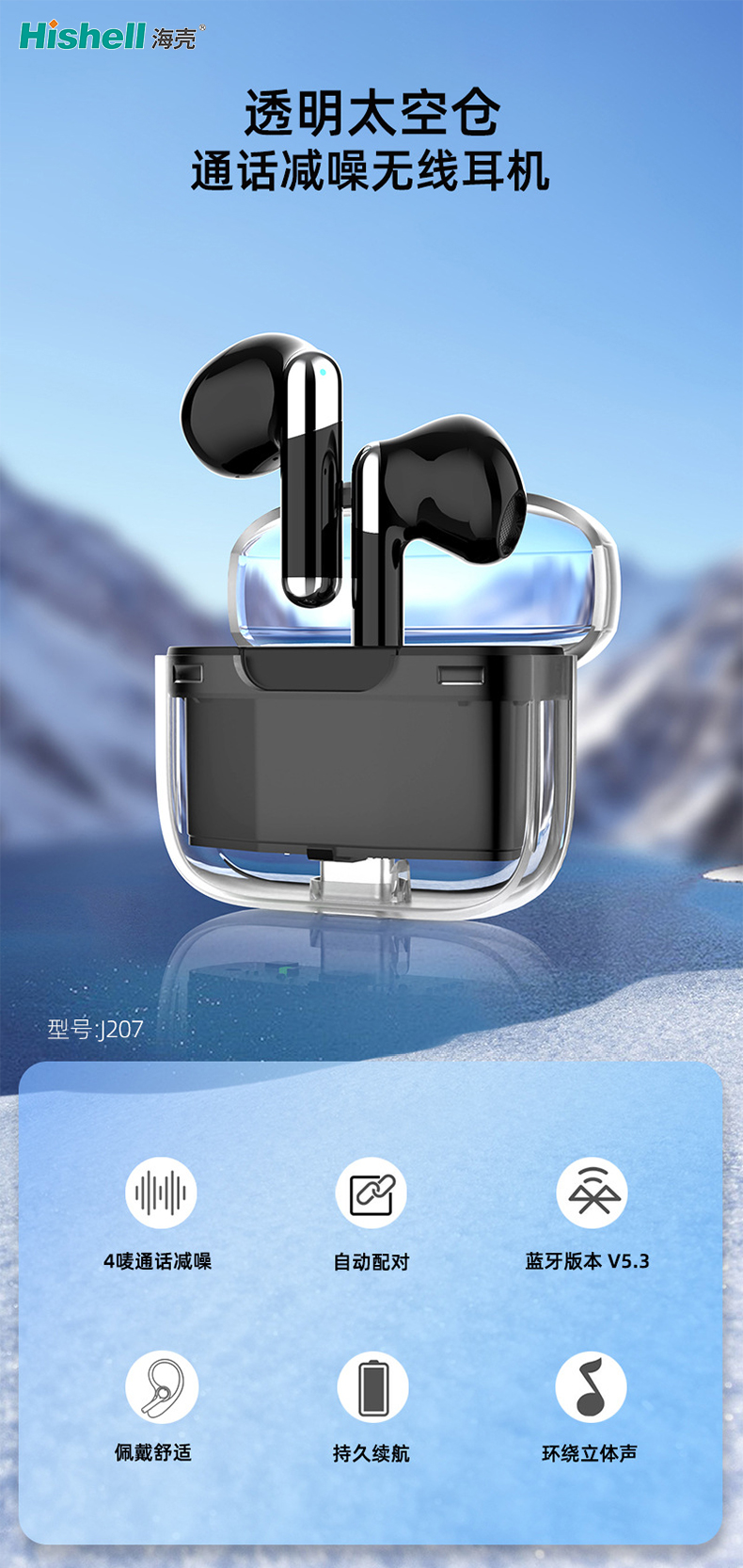 这款蓝牙耳机以透明太空仓设计美学重塑颜值标杆,全透明充电仓如水晶匣般精致,内部精密结构若隐若现,科技感拉满。耳机腔体搭配半透材质与细腻电镀,光影下尽显质感,随手放置皆是视觉焦点。核心搭载高清发声单元,三频均衡通透,搭配蓝牙5.3芯片实现秒连稳连。更支持主动降噪与长续航,将先锋设计与实用性能完美融合,无论是通勤还是日常,都能兼具格调与听觉享受。