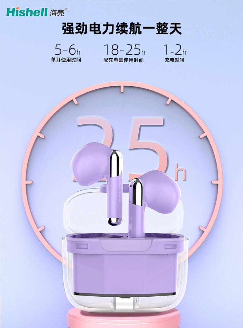 这款真无线蓝牙耳机以强劲续航为核心优势,轻松满足全天使用需求。单耳单次使用时长可达5-6小时,搭配充电盒总续航更是高达18-25小时,无论是通勤路上的音乐陪伴、办公时的会议通话,还是周末的户外出行,都无需担心电量告急。仅需1-2小时即可完成满电充电,碎片化时间就能快速回血。耳机采用人体工学设计,佩戴轻盈舒适,久戴无压迫感。同时搭载高清通话降噪技术,嘈杂环境也能清晰沟通,搭配细腻音质,为你打造沉浸式听觉体验,是日常出行与办公的理想搭档。