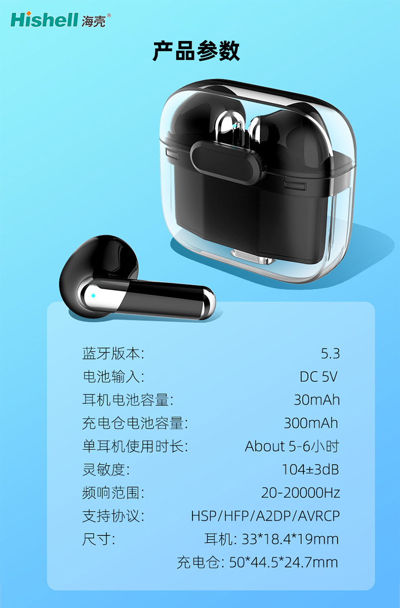 耳机尺寸:33*18.4*19mm 充电仓尺寸:50*44.5*24.7mm