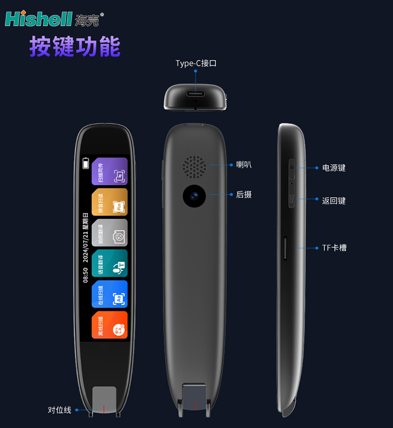 这款智能扫译笔以“扫描即同传”为核心,让跨语言沟通与学习更高效。它支持52种语言实时互译,扫描后译文可同步至手机,借助手机大屏清晰查看,阅读体验更舒适。采用高精准OCR识别技术,单词、长句一扫即出结果,响应迅速。