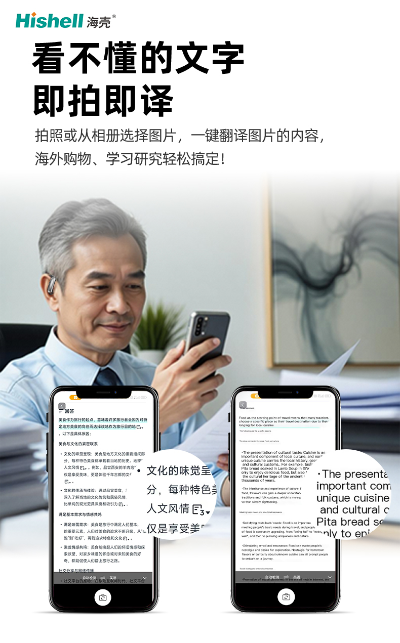 这款智能翻译耳机,打破语言壁垒,兼顾实时沟通与图文翻译,是出行、学习、购物的全能助手,轻松应对各类跨语言场景。