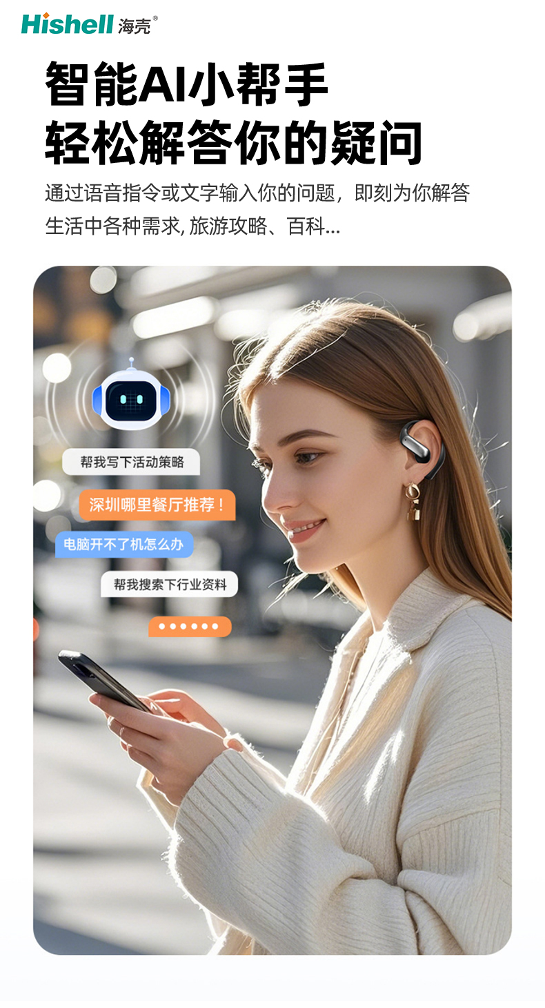 依托智能语音技术,耳机识别灵敏、响应迅速,能清晰捕捉指令,解答高效不卡顿。不管是跨境交流、外出游玩,还是日常求知、处理琐事,它都能贴身相伴,打破语言壁垒的同时,满足各类资讯查询需求,让疑难问题迎刃而解,成为随身得力的智能助手。