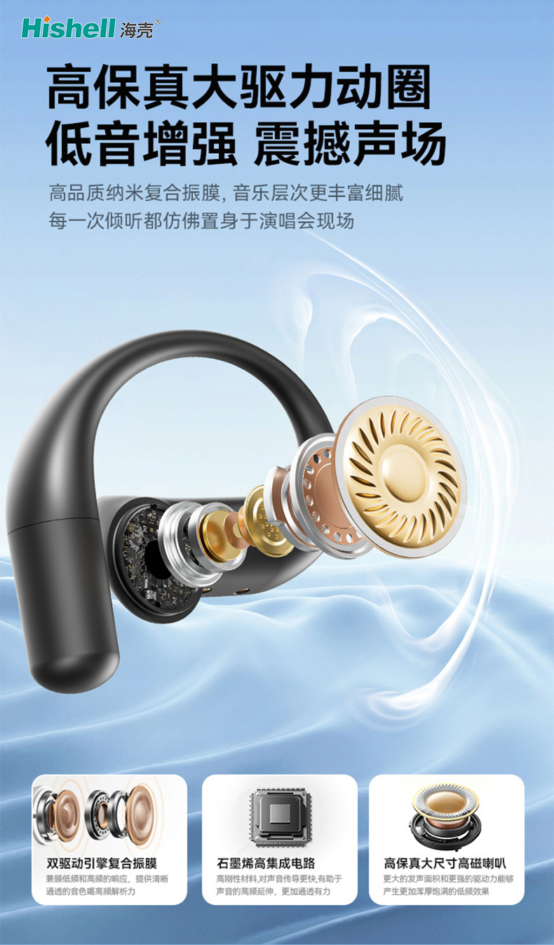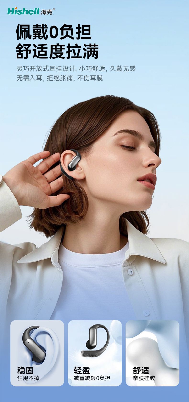它采用灵巧开放式耳挂设计,机身小巧轻盈,贴合耳郭弧度,佩戴稳固不易滑落,久戴依旧无感舒适,真正实现全天佩戴无压力。区别于入耳式耳机,它无需塞入耳道,从根源上杜绝耳道胀痛、闷堵的问题,也不会损伤耳膜,呵护耳部健康,即便长时间佩戴开会、出游、跨国交流,也不会出现耳部酸痛、闷胀的情况,敏感耳也能放心使用。