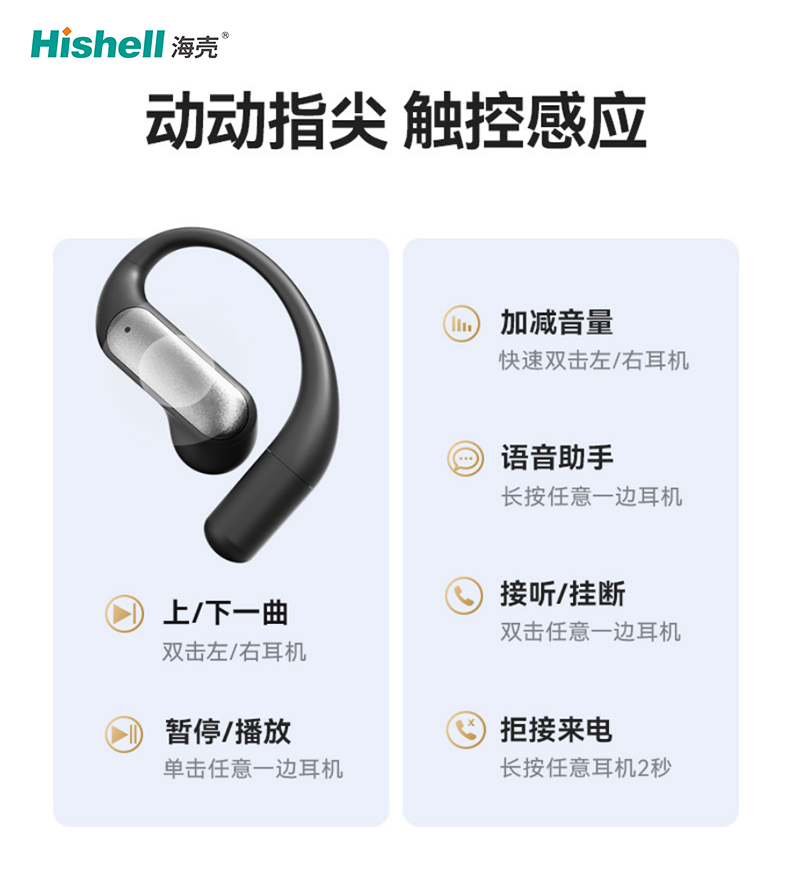 它的触控逻辑清晰易懂,上手毫无难度。切换曲目十分便捷,双击左耳机即可切换上一曲,双击右耳机就能直达下一曲;单击任意一侧耳机,就能快速实现音乐暂停或播放,随心掌控听歌节奏。想要调节音量也无需摸索按键,快速双击左、右耳机,就能灵活加减音量,适配不同聆听需求。