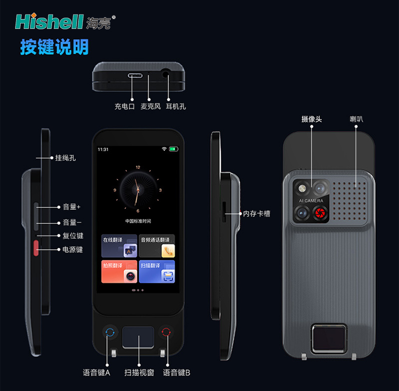 支持多点触摸可视化操作,指尖轻触即可切换功能、输入内容,老人小孩都能轻松掌握;翻译时实时显示内容,音文同步呈现,译文与语音对应一目了然,避免因信息不同步导致的误解。无论是语音翻译时查看文字记录,还是扫描、拍照翻译时确认结果,高清屏幕都能清晰呈现细节,操作流畅不卡顿,让每一次翻译都便捷高效,提升跨语言交流的舒适感。