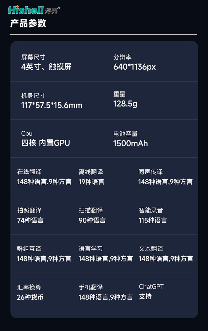 这款翻译机配备 4 英寸高清触摸屏,带来清晰直观的操作体验,让跨语言沟通更易上手。