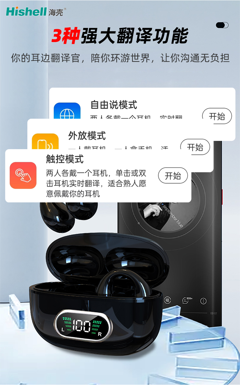 无论是环球旅行邂逅异国风情,还是跨境交流对接商务伙伴,这款翻译耳机都能成为你的“耳边翻译官”,以三种强大翻译功能打破语言壁垒,让沟通轻松无负担。