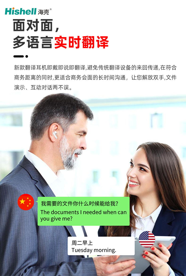 它能让你彻底解放双手,进行文件演示时,无需分心操作翻译设备;与客户互动对话时,也能流畅交流不中断,双向翻译精准及时,确保商务沟通的专业性与高效性,轻松应对多语言商务场景。