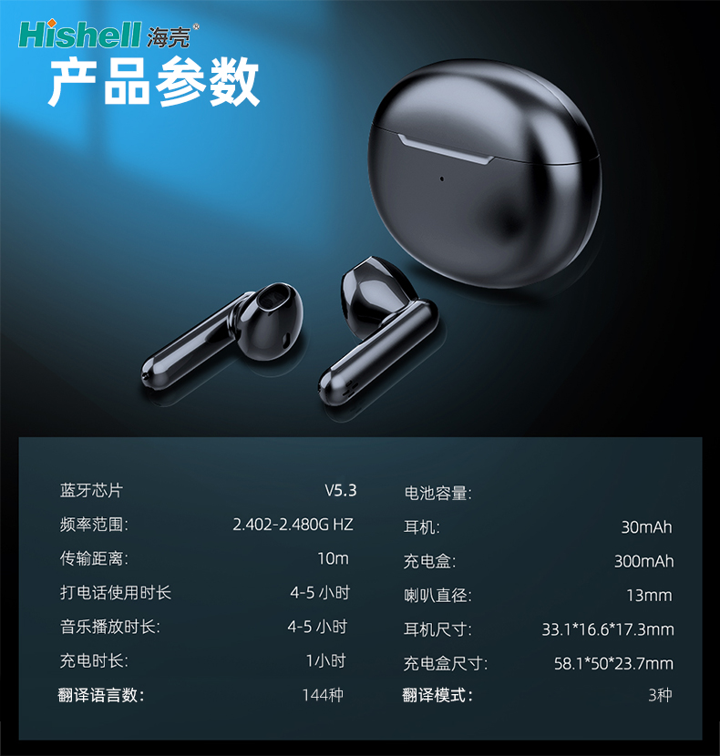 充电盒尺寸:58.1*50*23.7mm 翻译语言数:144种