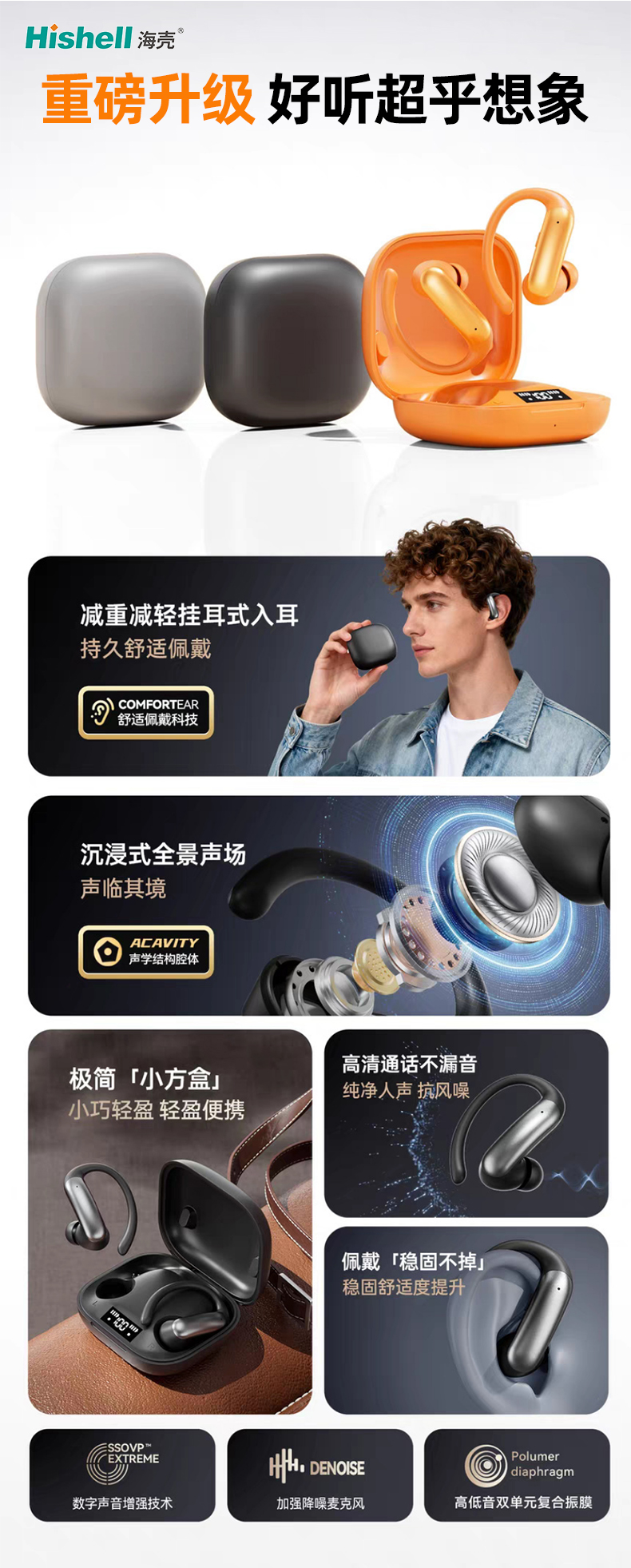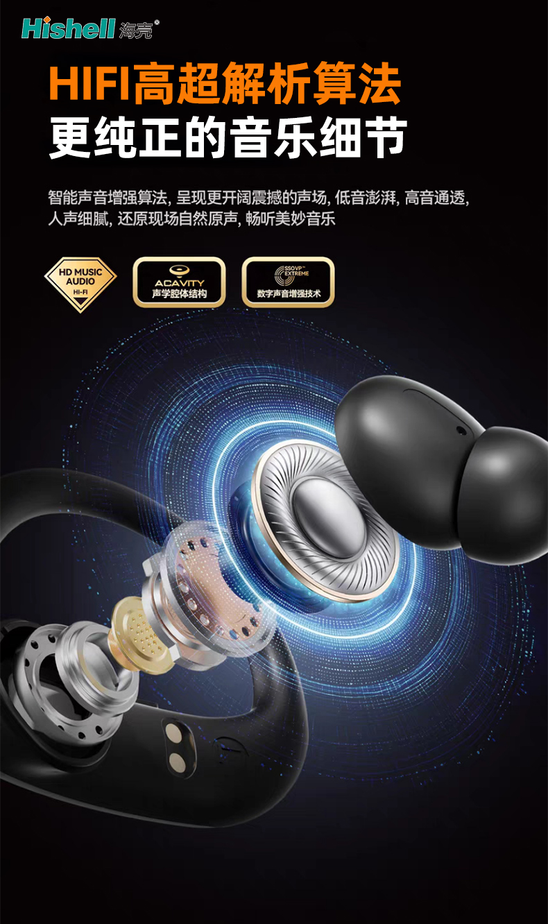 音质方面,搭载沉浸式全景声场技术,让你仿佛置身音乐现场或对话场景,细节还原度极高。更配备数字声音增强技术、加强型降噪麦克风,以及高低音双单元复合振膜,不仅能精准放大清晰音质,还能有效过滤环境噪音,实现高清通话不漏音,纯净人声清晰传递,即便在有风环境下也能保证通话质量。
