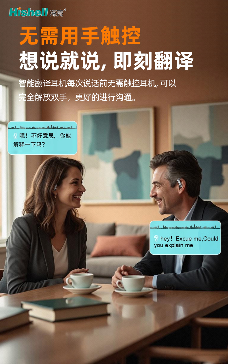 这款智能翻译耳机打破传统操作束缚,实现“无需用手触控,想说就说,即刻翻译”的便捷体验。不同于普通翻译设备,它无需在每次说话前手动触控耳机,真正解放你的双手,让沟通更专注、更自然。无论是商务洽谈中的即时交流,还是跨国旅行时的日常对话,只需正常开口说话,耳机便能快速捕捉语音信息,精准完成多语种互译,翻译延迟低、准确率高。轻量化设计搭配舒适佩戴感,长时间使用也无压力,轻松搞定跨语言沟通难题,是你的随身智能翻译好帮手。