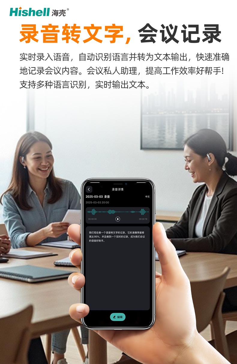 这款翻译耳机堪称职场人的会议效率神器,核心亮点在于强大的录音转文字功能,轻松化解会议记录的繁琐难题。它能实时录入会议中的语音内容,凭借先进的识别算法,自动精准识别多种语言并同步转为文本输出,无需手动逐字记录,让你全程专注会议沟通,不再分心记笔记。