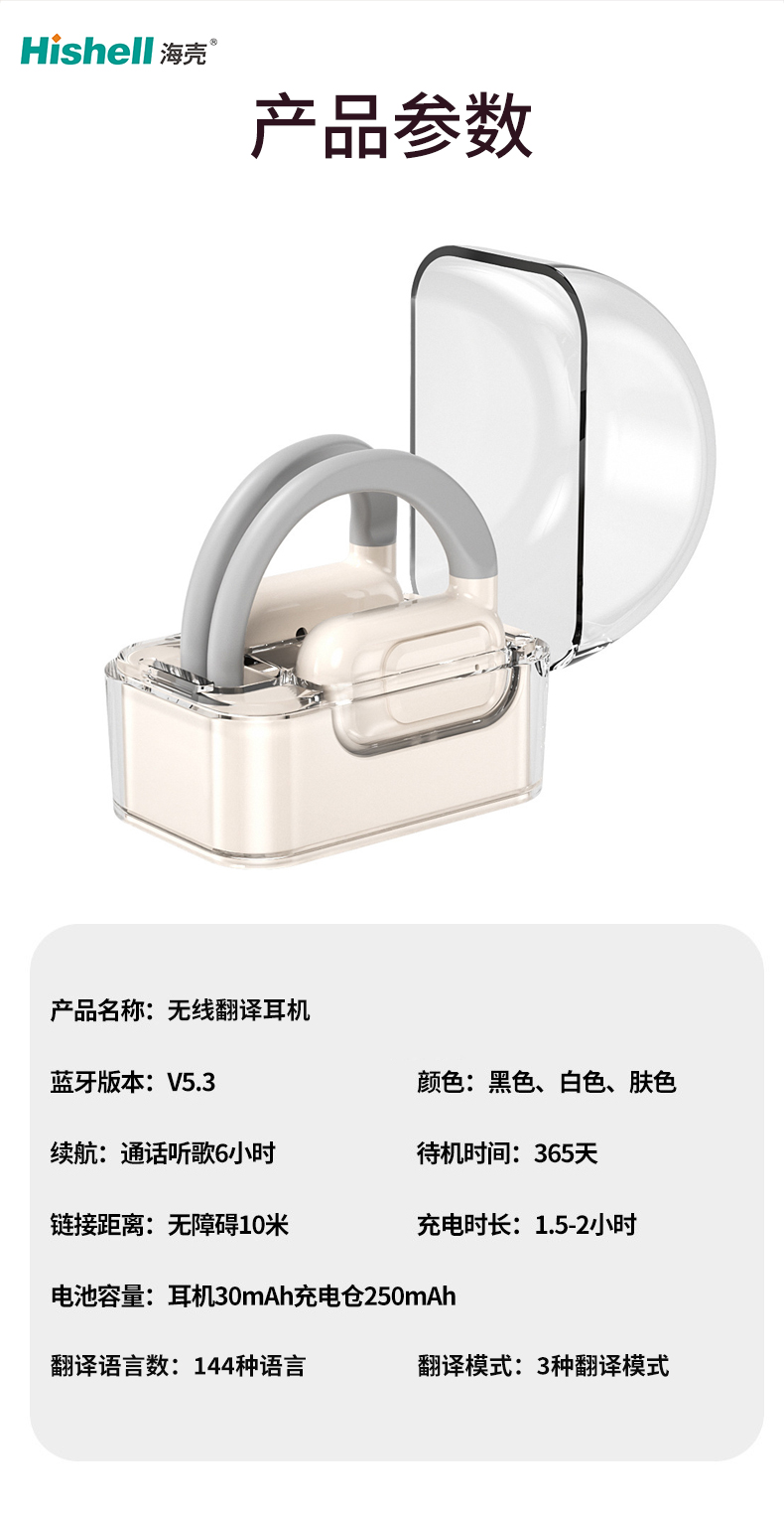 产品名称:无线翻译耳机 蓝牙版本:V5.3
