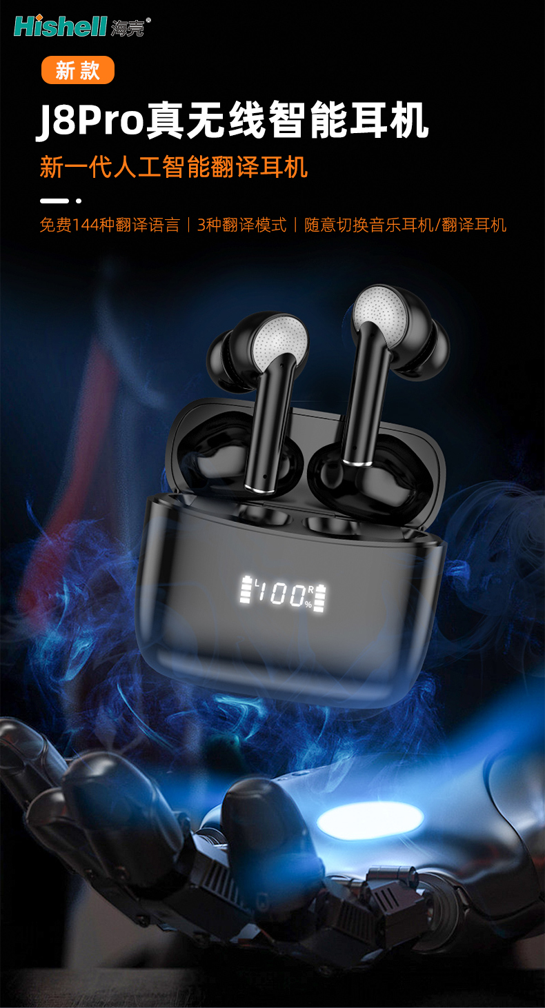 新款 J8pro 真无线智能耳机,是搭载新一代人工智能技术的翻译利器。它打破语言壁垒,支持免费 144 种语言翻译,无论是日常交流、商务洽谈还是出国旅行,都能精准传递心意。同时,耳机配备 3 种翻译模式,可根据不同场景灵活切换,满足多样化需求。更贴心的是,它兼具音乐播放功能,只需简单操作,就能在翻译耳机与音乐耳机之间随意切换,让你在跨语言沟通之余,也能随时沉浸于动听旋律,兼顾实用与娱乐,为生活增添更多便捷与乐趣。