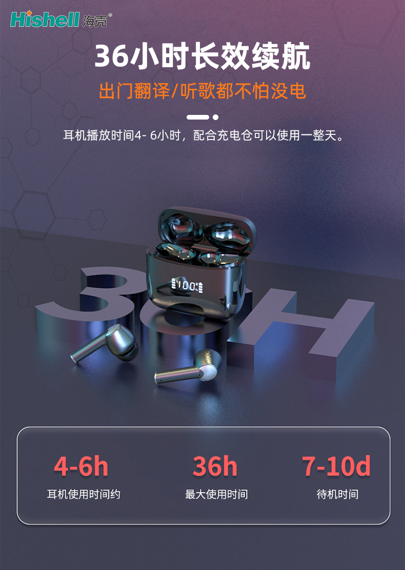 这款翻译耳机彻底解决外出用电焦虑,凭借 36 小时长效续航能力,让你出门在外无论是翻译沟通还是听歌娱乐,都无需担心没电困扰。