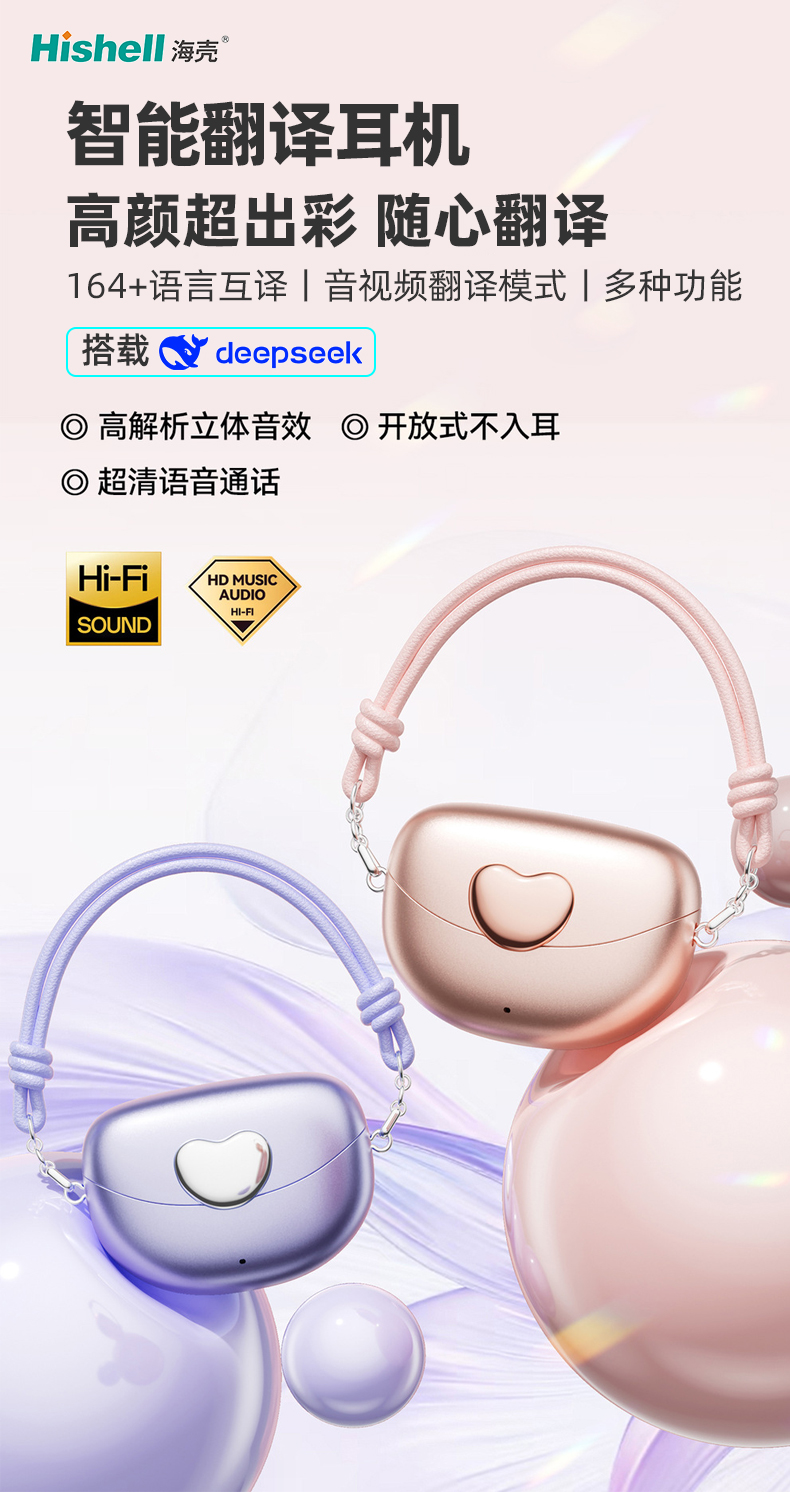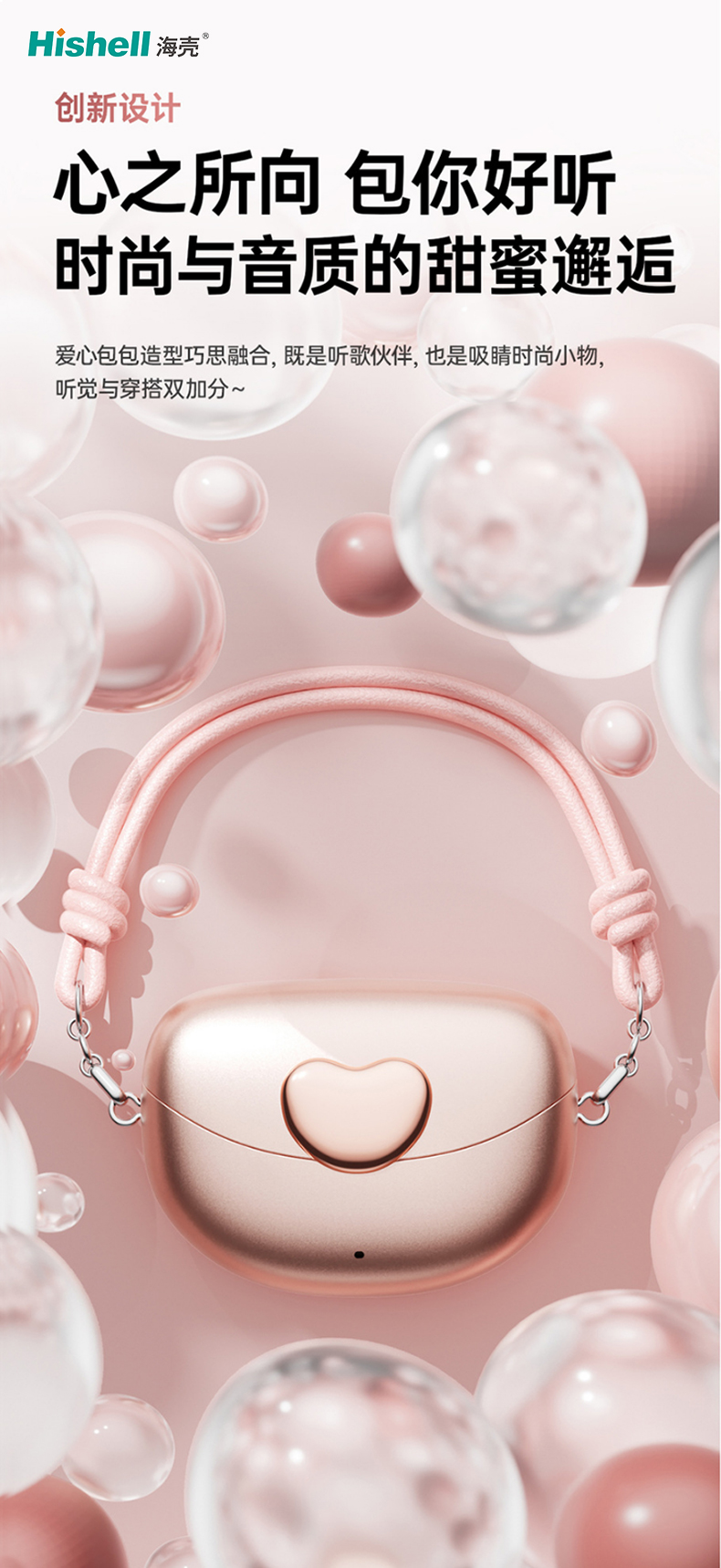 这款翻译耳机以创新设计为核心,将爱心包包造型巧思融入机身,打破耳机与时尚单品的边界,既是陪伴日常的听歌伙伴,也是出门吸睛的时尚小物,让听觉享受与穿搭质感双向加分。机身小巧精致,爱心轮廓灵动可爱,便携易带,随手放进包中不占空间,自带温柔氛围感,轻松适配各种穿搭风格。