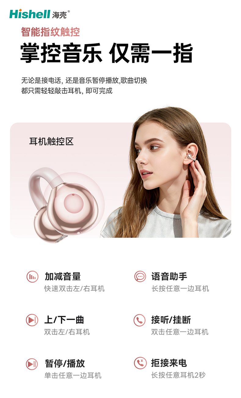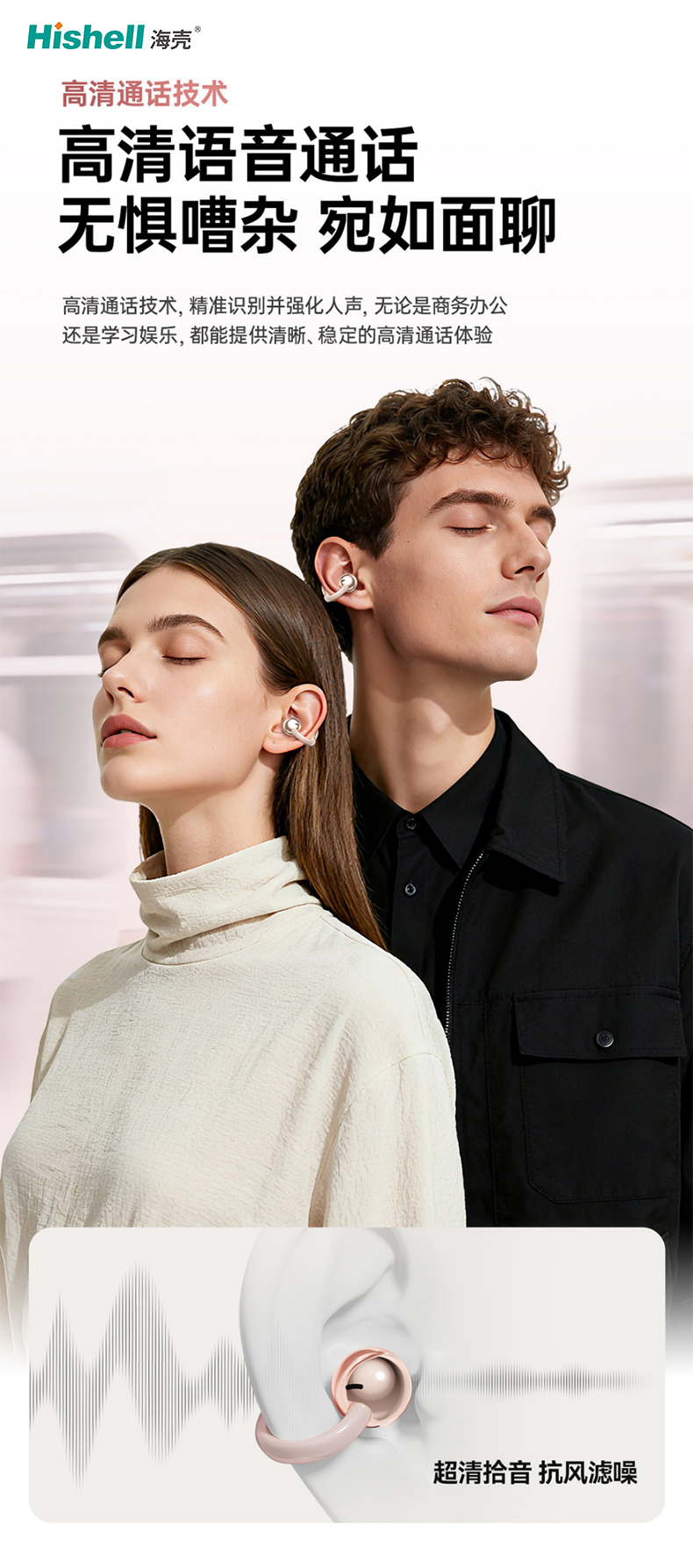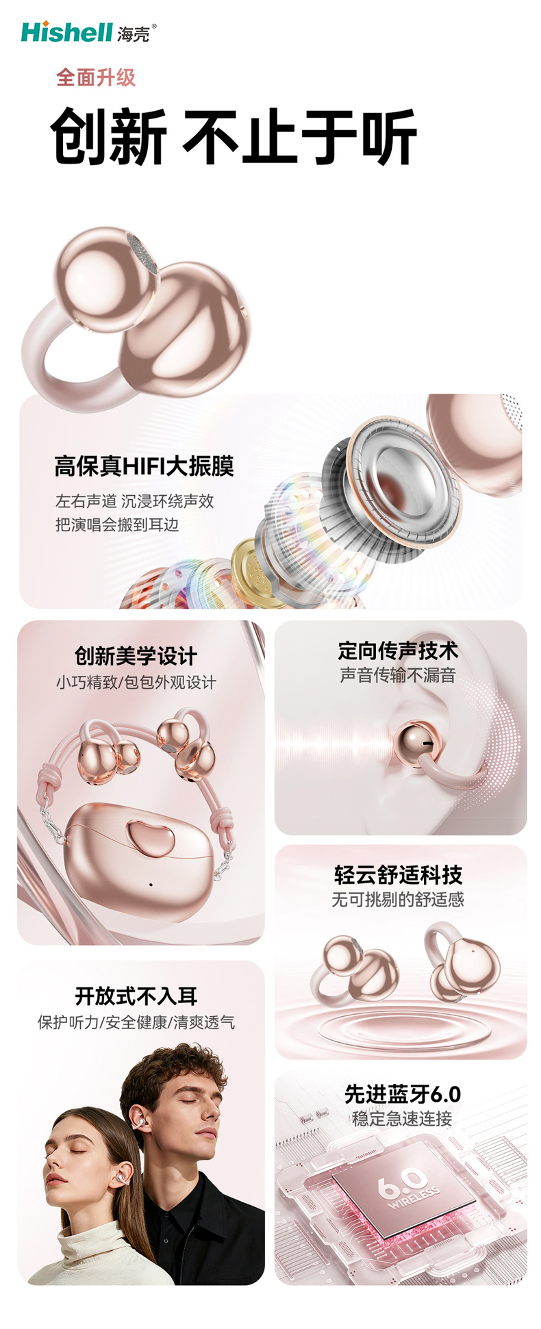 采用开放式不入耳设计,无需堵塞耳道,清爽透气不闷耳,既能守护听力健康,又能随时感知周围环境,出行更安全。轻云舒适科技加持,久戴无压迫感,带来无可挑剔的佩戴体验。配备先进蓝牙6.0芯片,连接稳定且传输急速,告别卡顿、断连烦恼,随时随地畅享清晰音质与流畅沟通。