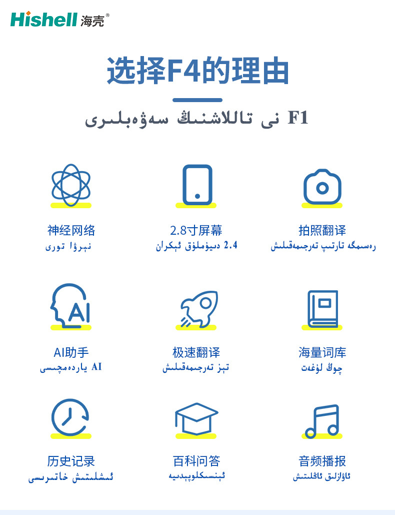 F4 维语翻译机是维汉跨语言沟通的得力助手,以 “超快点查、一点就译” 为核心优势,毫秒级响应让沟通零延迟。它支持维汉双语互译,配备语音、文字、拍照等多元输入方式,语音识别灵敏,带口音也能精准捕捉,拍照翻译对路牌、菜单等印刷体甚至手写体都能高效识别。