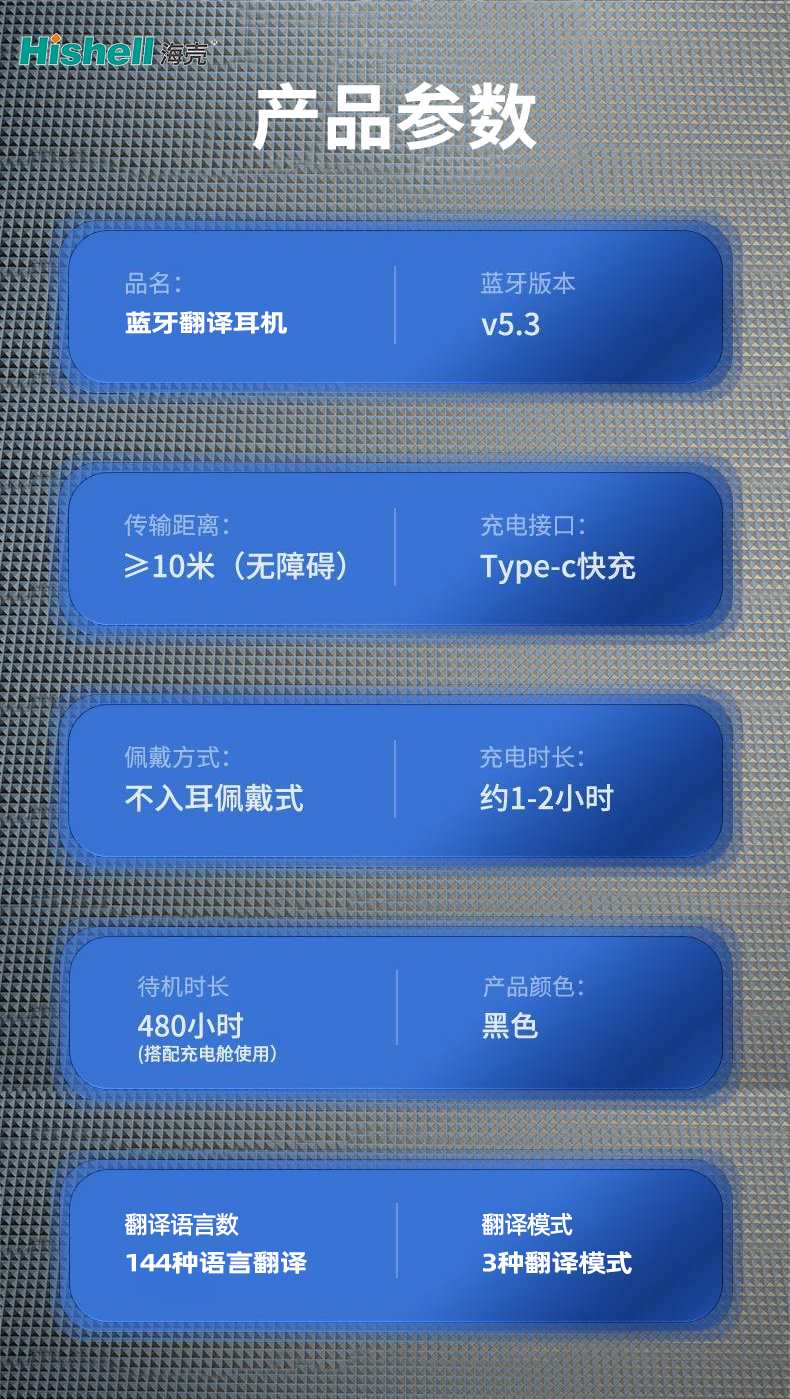 品名:蓝牙翻译耳机 蓝牙版本:V5.3