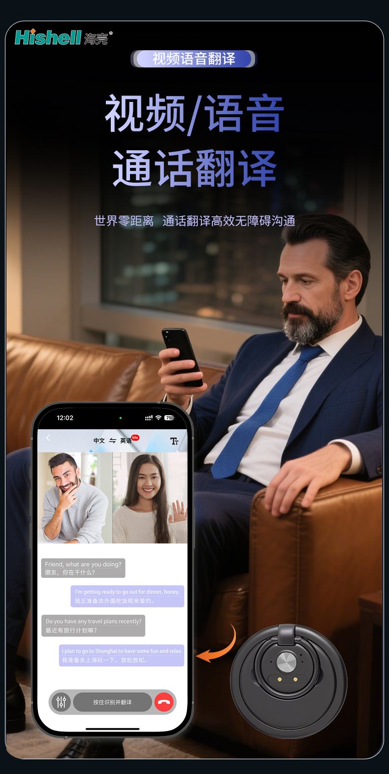 机身小巧便携,续航持久,满足户外、出差、居家等多种使用需求,既能助力商务人士高效开展跨国合作,也能方便亲友间跨越语言的温情沟通,真正实现“通话即翻译,沟通无国界”,让每一次跨国对话都流畅自然、高效省心。
