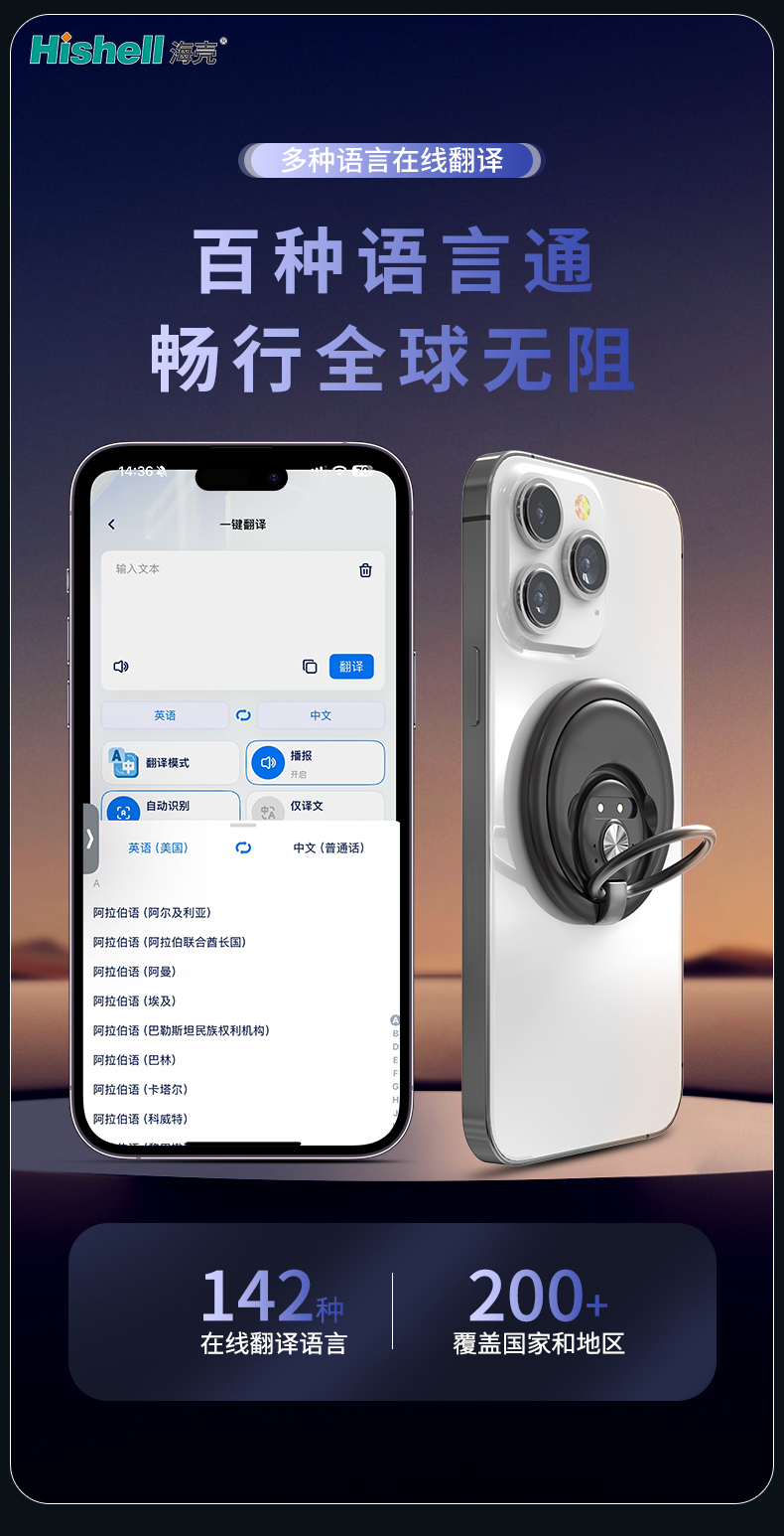 机身自带强力磁吸功能,可紧密贴合手机背面,吸附牢固不易脱落,无需额外支架或固定装置,解放双手的同时,还能避免使用过程中意外滑落损坏设备。磁吸设计还能实现快速取放,搭配手机使用时操作更便捷,轻松实现实时翻译、语音交互等功能,让跨语言沟通更高效、更省心,适配各类场景使用,兼顾颜值与实用性。