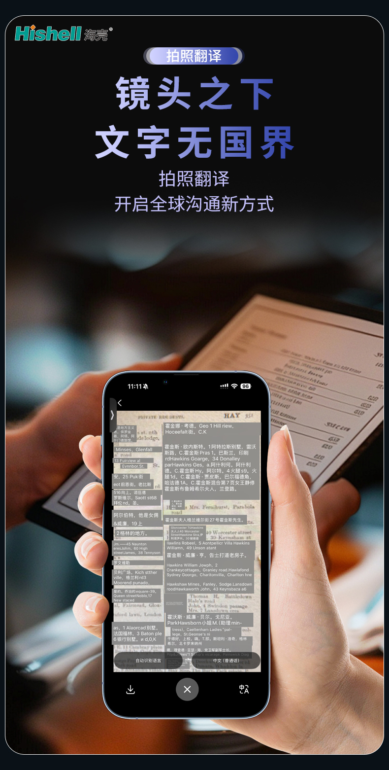 操作简单易懂,无需复杂设置,一键开启拍照模式,秒出翻译结果,无论是老人还是小孩都能轻松上手。高清镜头搭配智能识别算法,哪怕是模糊文字、复杂排版,也能精准捕捉,真正实现“所见即译”,让跨语言沟通更顺畅、更高效。