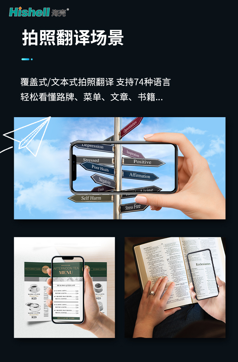 拍照翻译,镜头之下文字无国界,这款翻译机以创新科技打破语言壁垒,开启全球沟通新方式。无需手动输入,只需将镜头对准任意文字,无论是外文海报、菜单、文档还是路标,瞬间即可完成识别与翻译,高效又便捷。