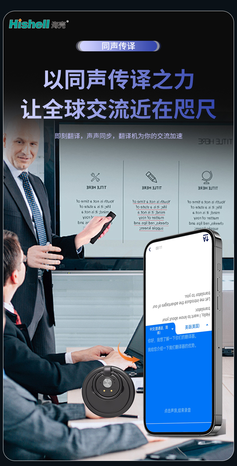 以同声传译之力,让全球交流近在咫尺。这款同声传译翻译机,打破语言壁垒,重构跨语种沟通体验,无论是商务洽谈、国际会议,还是出国旅行、文化交流,都能成为你最可靠的随行翻译官。