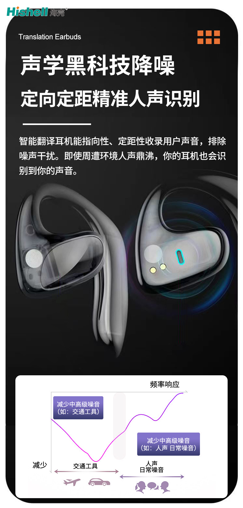 通过专属拾音算法,耳机可定向捕捉特定方向、特定距离内的用户声音,同时启动深度降噪模式,高效过滤背景杂音、环境回声与突发噪音。无需刻意提高音量,你的话语会被精准收录并快速传输至翻译系统,避免因声音干扰导致的翻译偏差。