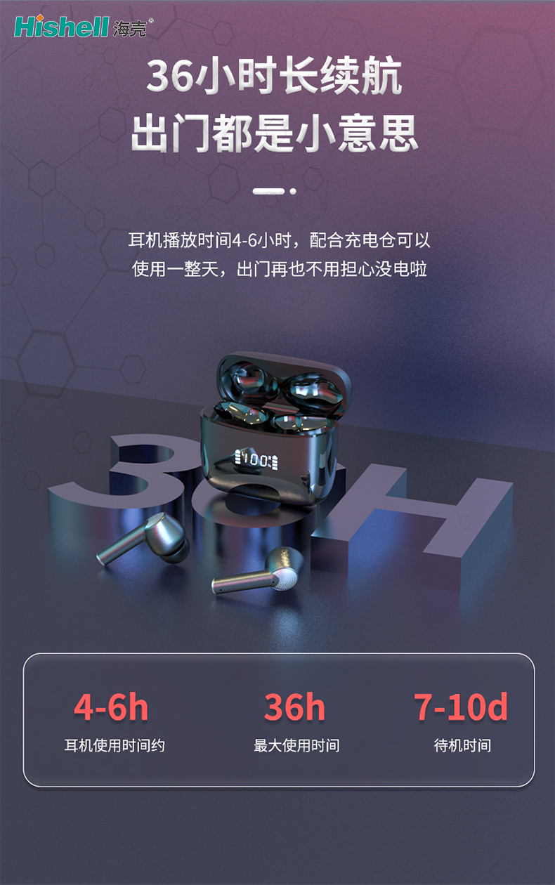 这款蓝牙耳机堪称续航王者,36小时超长总续航,让出门在外的聆听毫无顾虑。单耳耳机续航可达4-6小时,日常通勤、短时外出单靠耳机就能轻松应对;搭配充电仓使用,总续航拉满,全天畅听无压力,彻底告别电量焦虑。更有7-10天的待机时长,即便偶尔忘记充电,也能随时投入使用。无论是日常通勤、运动健身,还是长途旅行,它都能稳稳陪伴,用持久电量守护每一段动听时光。