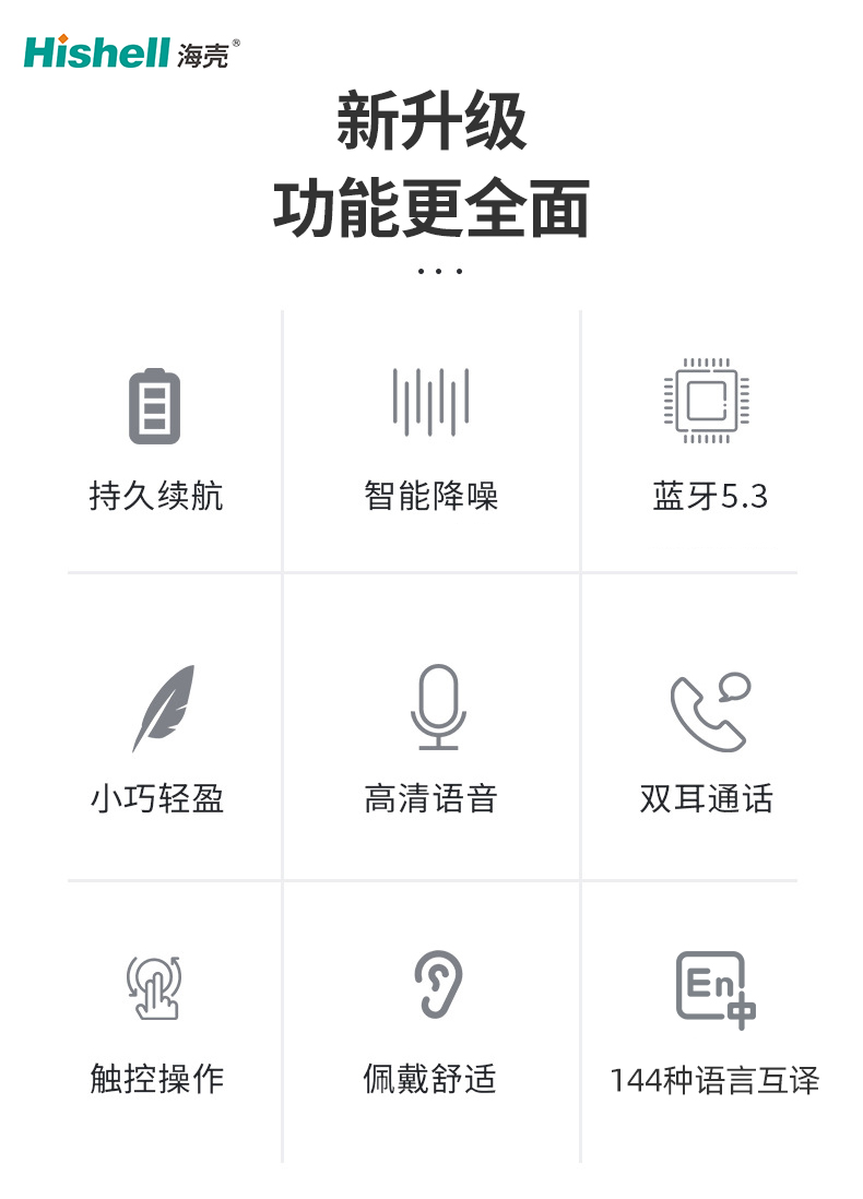 这款翻译耳机全新升级,九大实用功能覆盖多场景需求,体验更出色。持久续航满足全天使用,无需频繁充电;智能降噪技术过滤环境杂音,嘈杂场合也能精准翻译;蓝牙 5.3 连接稳定快速,延迟更低。