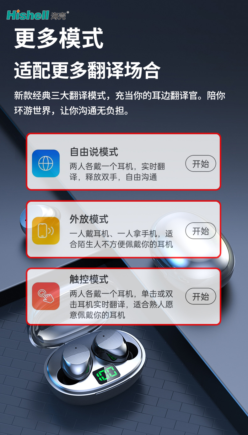 新款翻译耳机搭载经典三大翻译模式,如同贴心的耳边翻译官,陪你环游世界,轻松应对各类跨语言沟通场景,让交流全程无负担。