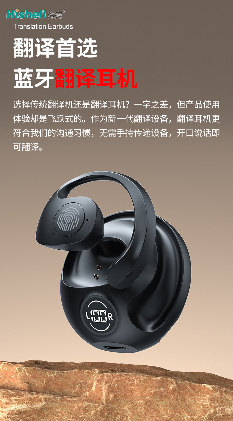 这款翻译耳机以极致工艺雕琢细节,完美弧度搭配丝滑线条,每一处轮廓都历经反复打磨,每一份重量都经过精准考量,既勾勒出简约大气的精致造型,又实现轻若无物的佩戴体验,久戴无负担。搭载高效智能翻译芯片,支持多语种实时互译,语音识别精准、翻译流畅自然,打破语言壁垒。机身贴合耳廓工学设计,兼顾舒适度与密封性,降噪加持让沟通更清晰。无论是跨境出行、商务洽谈还是外语交流,它都能兼具颜值与实力,成为便捷实用的随身沟通伴侣。
