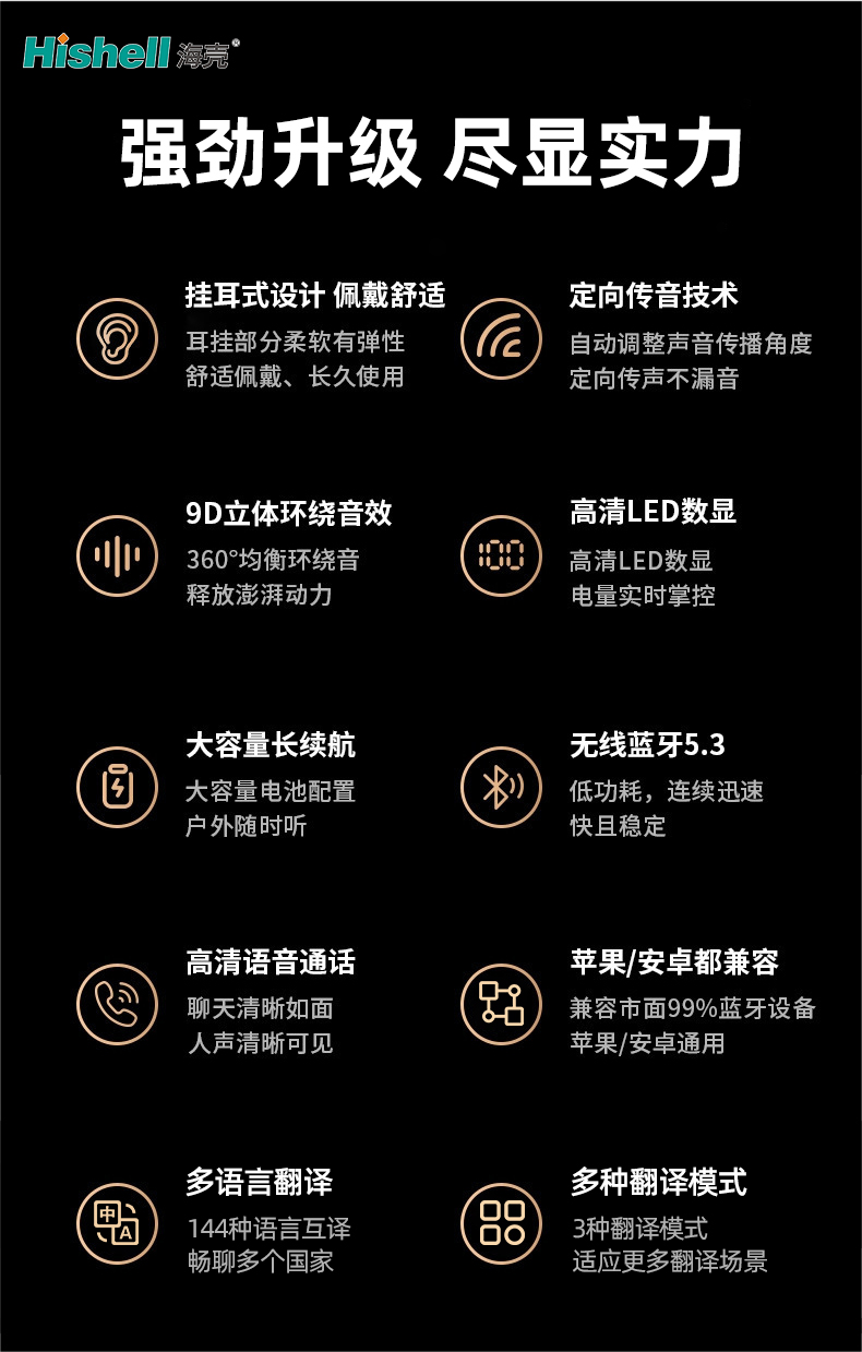 这款翻译耳机兼具卓越翻译性能与HIFI级震撼音质,搭载大振膜大喇叭发声单元,解锁沉浸式听觉与顺畅沟通双重体验。采用专业声学调校,实现三频均衡适配,澎湃立体环绕音效包裹耳畔,还原声音本真质感。高音通透不刺耳,细腻传递每一处音色层次;中音饱满醇厚,人声还原自然贴耳;低音强劲扎实,下潜有力无拖沓,全音域覆盖满足多元听觉需求。无论是跨境沟通、外语学习,还是日常听歌、观影,都能兼顾清晰翻译与高品质音质,兼顾实用性与听觉享受,适配多场景使用,解锁便捷与质感并存的全新体验。