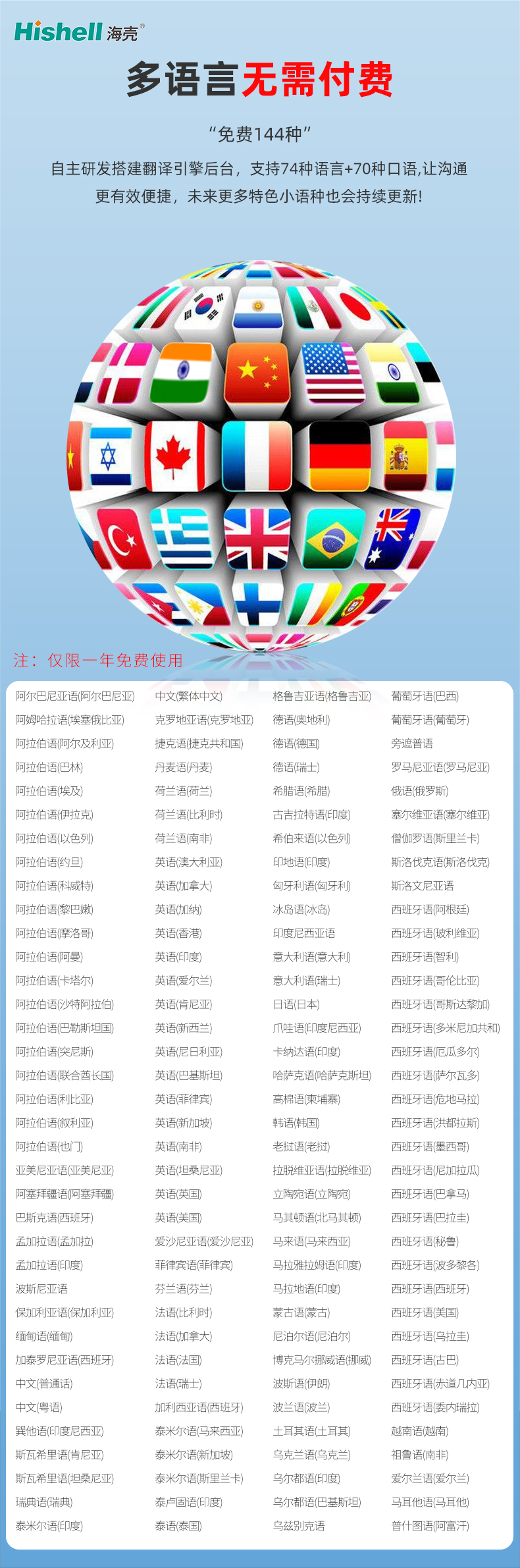 这款翻译耳机以全域免费多语言翻译为核心亮点,无需额外付费,即可解锁144种语言翻译服务,覆盖日常沟通、跨境出行、商务洽谈等多元场景,彻底打破语言壁垒。依托自主研发搭建的专属翻译引擎后台,实现稳定高效的实时翻译,精准支持74种官方语言与70种口语变体,兼顾标准表达与生活化对话,避免生硬直译,让跨语言沟通更自然、便捷且高效。我们持续深耕语言库迭代,未来将逐步新增特色小语种,不断拓宽适用边界,无论是海外旅行、涉外办公,还是跨文化交流,都能为用户提供可靠的翻译支撑,成为随身便携的跨语言沟通助手。