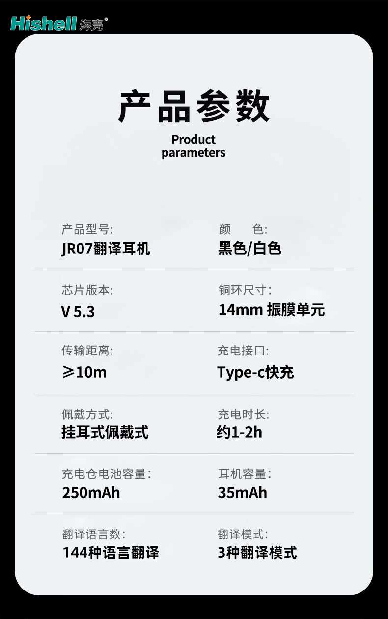 产品型号:JR07翻译耳机 颜色:黑色/白色