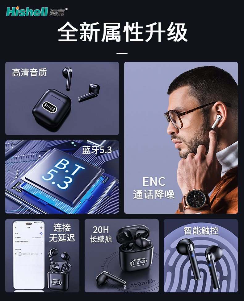 这款蓝牙耳机携全属性升级强势来袭,全方位解锁高品质音频体验!搭载高清发声单元,音质细腻通透,高低音层次分明,每首歌都宛如现场演绎。采用蓝牙5.3技术,连接更快更稳定,抗干扰能力拉满,搭配低延迟优化,追剧、打游戏音画精准同步。内置ENC通话降噪算法,智能过滤环境杂音,地铁、咖啡厅等嘈杂场景也能实现清晰通话。更有20H超长续航,搭配充电仓告别电量焦虑,日常通勤、长途出行全程无忧。便捷智能触控设计,轻击切歌、接听电话,操作简单又省心,是日常必备的音频好物!