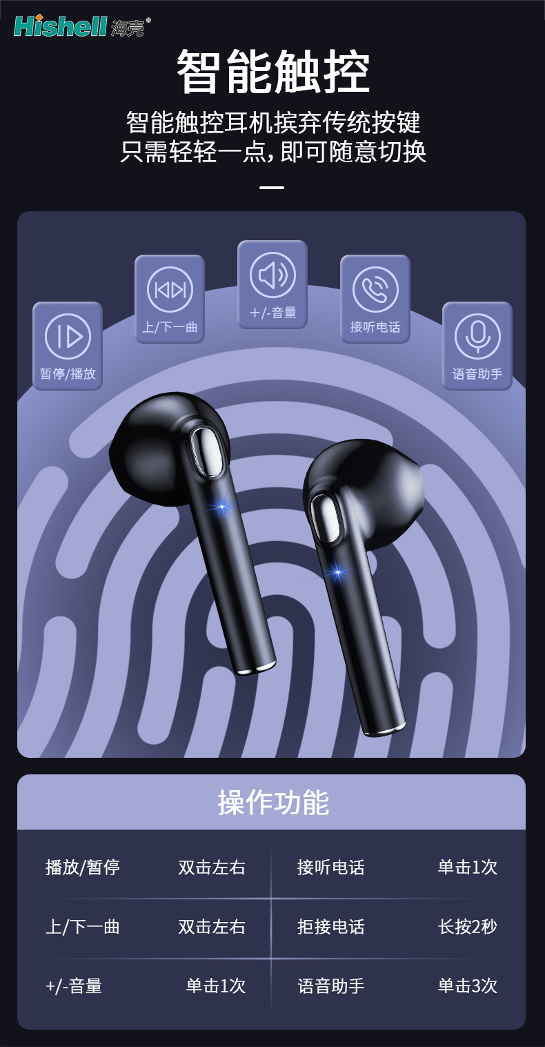 这款蓝牙耳机以智能触控为核心亮点,彻底摈弃传统按键设计的繁琐,只需轻轻一点,即可随意切换歌曲、调节音量;双击接听或挂断通话,长按唤醒语音助手,所有操作精准响应,解放双手更便捷。搭载高清蓝牙芯片,连接稳定抗干扰,搭配定制动圈单元,还原细腻立体音效,无论是通勤还是运动都能沉浸其中。单耳轻量化设计,久戴无压迫感,IPX5级防水轻松应对汗水与小雨。单次续航可达5小时,搭配充电仓总续航超20小时,告别电量焦虑。从日常通勤到运动健身,它以便捷操作与优质体验,成为你的随身音频伴侣。