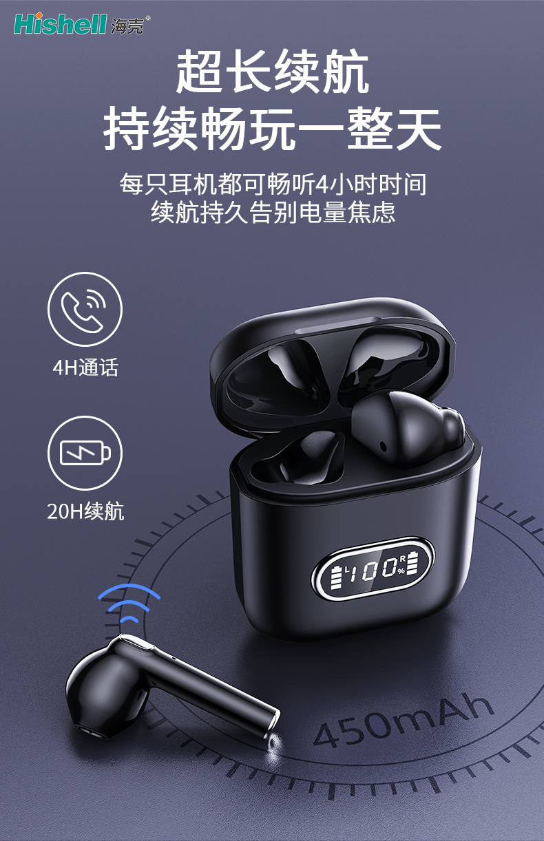 这款真无线蓝牙耳机以超长续航为核心亮点,让你持续畅玩一整天,彻底告别电量焦虑。每只耳机单次满电可实现4小时畅快听歌,搭配充电盒总续航达20小时,日常通勤、办公学习或短途出行无需频繁充电。通话表现同样出色,支持4小时清晰通话,内置降噪技术过滤环境杂音,沟通更顺畅。它采用稳定蓝牙连接,适配各类智能设备,开机即连无需繁琐操作。音质细腻通透,高低音均衡,无论是沉浸音乐、追更剧集还是高效通话,都能带来优质体验,成为你的随身影音好搭档。