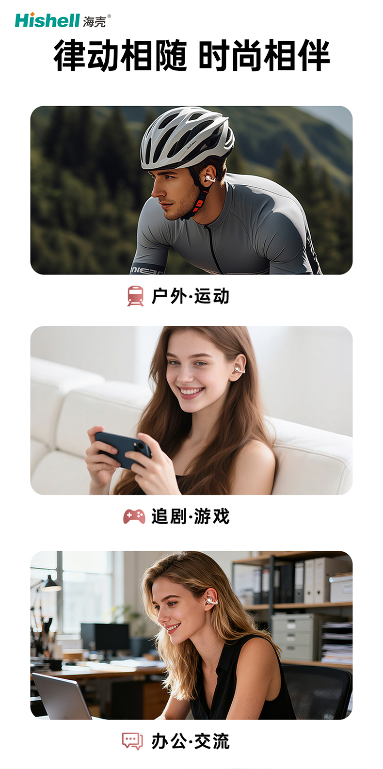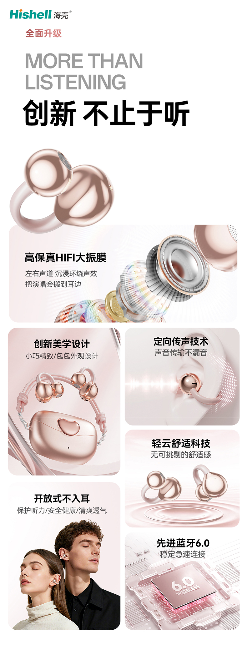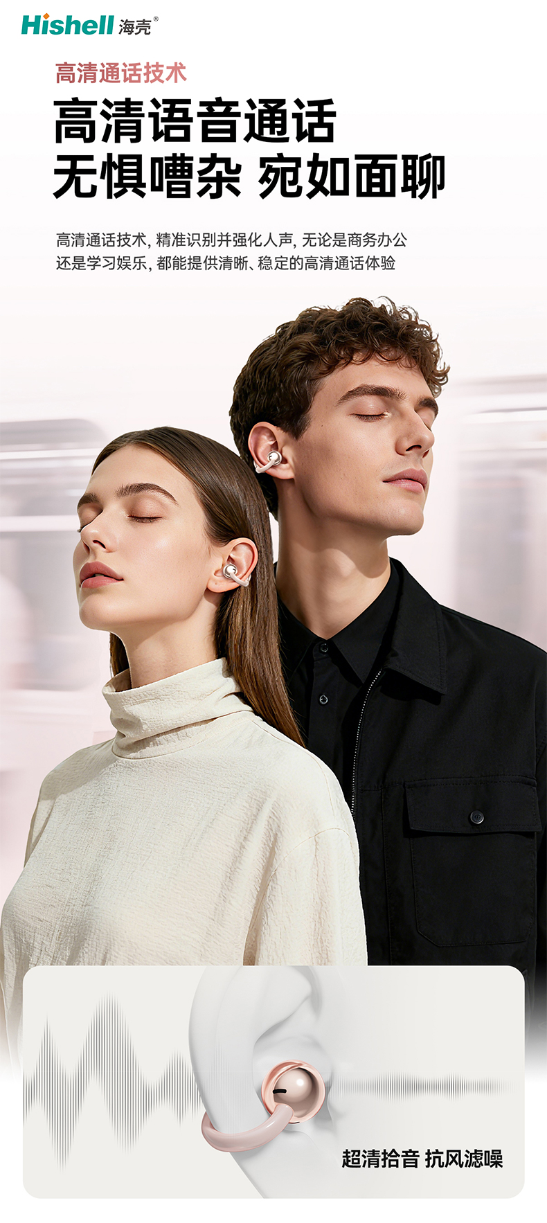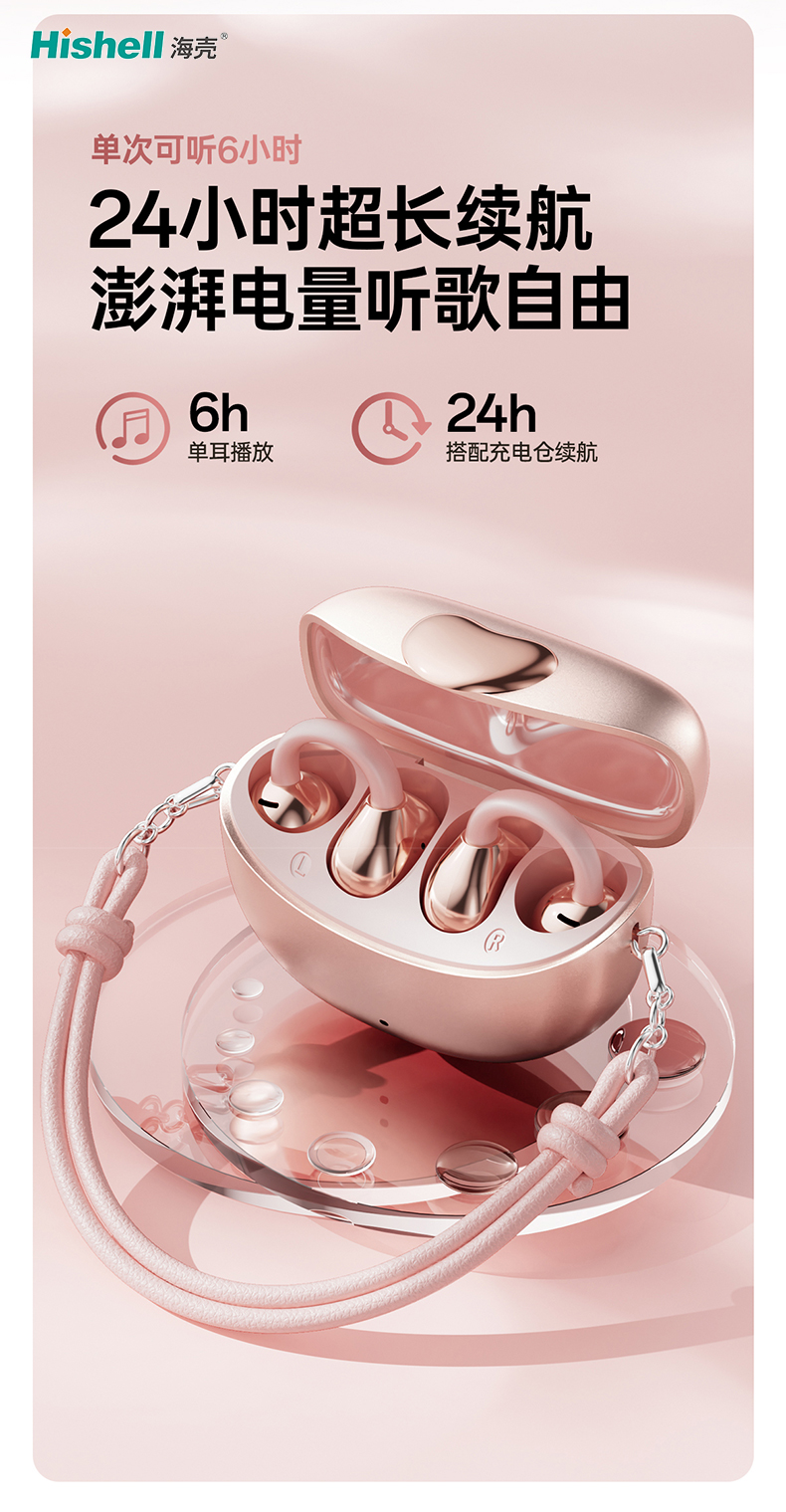 在佩戴体验上,它主打小巧舒适,采用非入耳式设计,告别传统入耳耳机的胀痛困扰,久戴无感更轻松。无需深入耳道,既能有效避免耳道摩擦损伤,减少耳道不适与感染风险,守护耳道健康,也能兼顾清晰音质与通透听感,让每一次佩戴都成为一种享受。