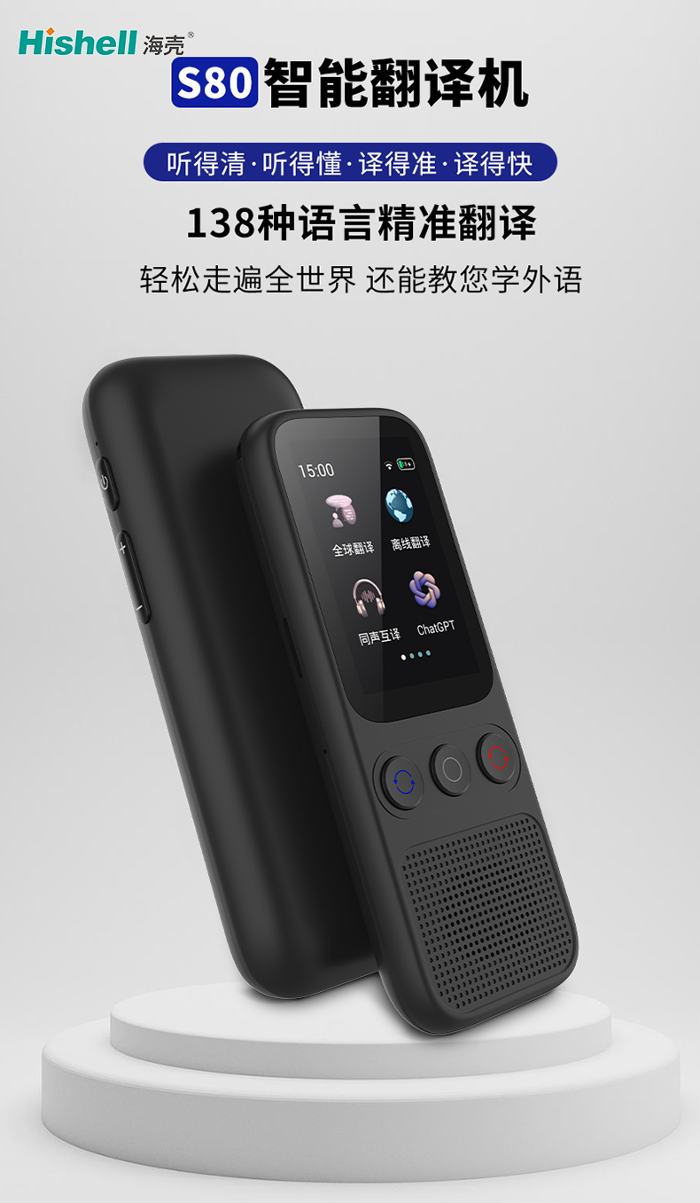 S80 智能翻译机以 “准确易用,沟通无忧” 为核心,凭借全场景功能覆盖,成为跨语言交流的全能助手。它支持 138 种语言在线翻译,搭配自带的离线语音库翻译技术,无论有无网络,都能精准传递语义;同声传译功能实现 “同时发言同时翻译”,跨国会议、多人交流无需等待,沟通效率大幅提升。