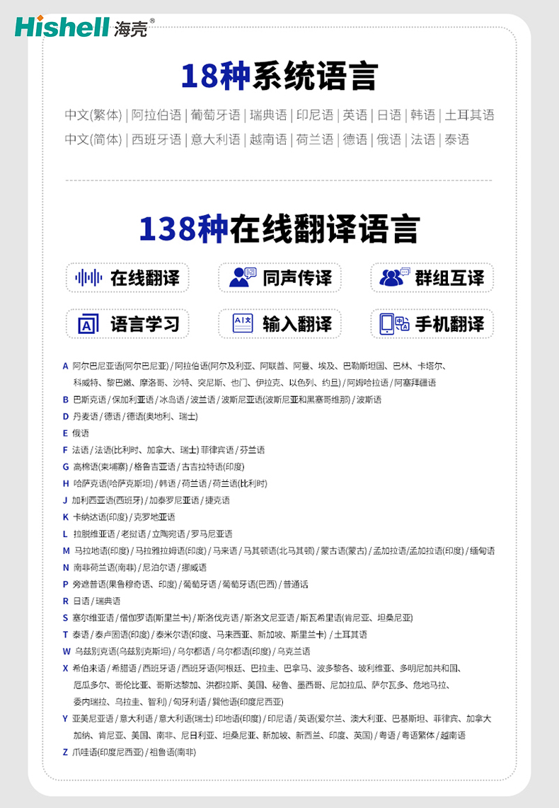 同声传译: 138种 音乐/视频: 支持