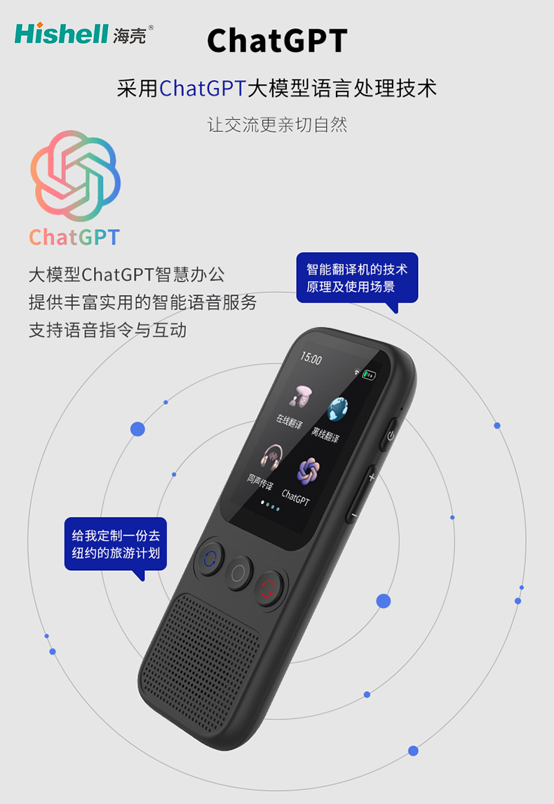 屏幕尺寸: 2寸、触摸屏 ChatGPT: 支持