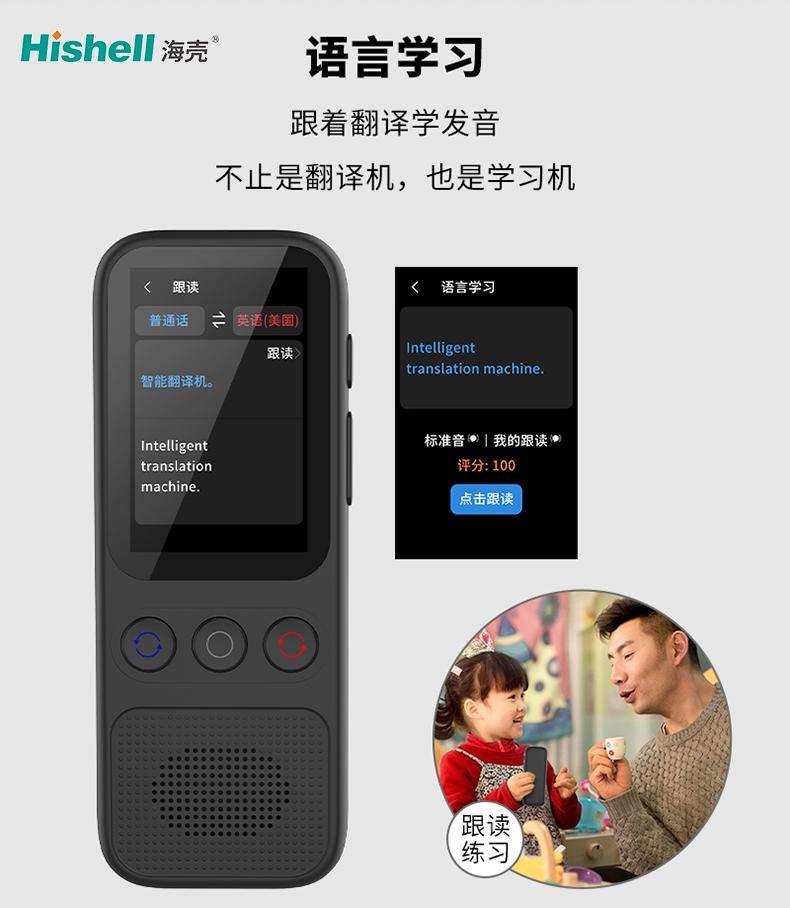 S80 智能翻译机打破单一工具属性,化身专业语言学习助手,让 “跟着翻译学发音” 成为可能。在翻译过程中,它不仅能输出精准译文,还能同步播放标准发音,用户可跟着逐句模仿,纠正语调与发音细节,告别 “哑巴外语” 困境。