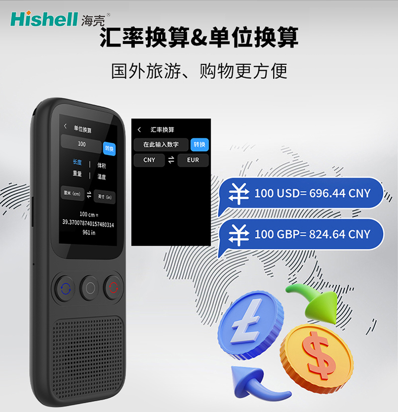 S80 智能翻译机内置汇率换算与单位换算功能,成为跨场景实用助手,让国外旅行、购物更便捷。汇率换算覆盖全球主要货币,实时对接权威金融数据,输入金额即可快速转换,精准把控商品价格,避免汇率波动带来的估算误差,海外血拼、餐厅买单都能心中有数。
