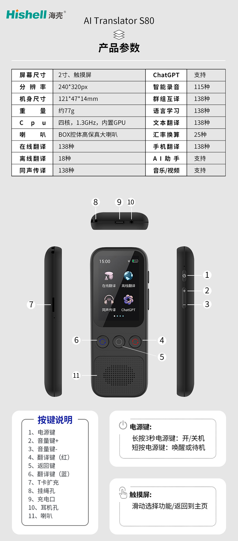 重量: 约77g 语言学习: 138种