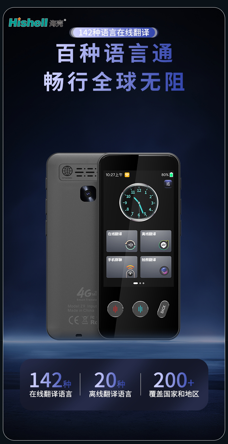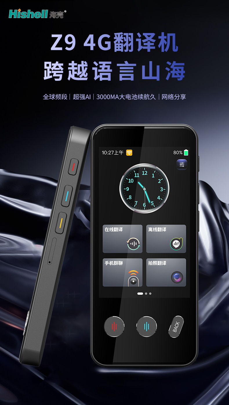 Z9 4G翻译机,为你轻松跨越语言山海,解锁无界沟通新体验。搭载全频段网络模块,覆盖全球多数国家和地区,落地即连无需额外换卡,偏远地带也能稳定传输。超强AI引擎加持,支持多语种实时互译,精准识别多种口音,响应迅速且译文自然,商务洽谈、日常交流都从容。3000mAh大容量电池,续航持久满足全天出行需求,告别电量焦虑。更贴心配备网络分享功能,可化身随身热点,为手机等设备提供网络支持,是跨国出行的必备神器。